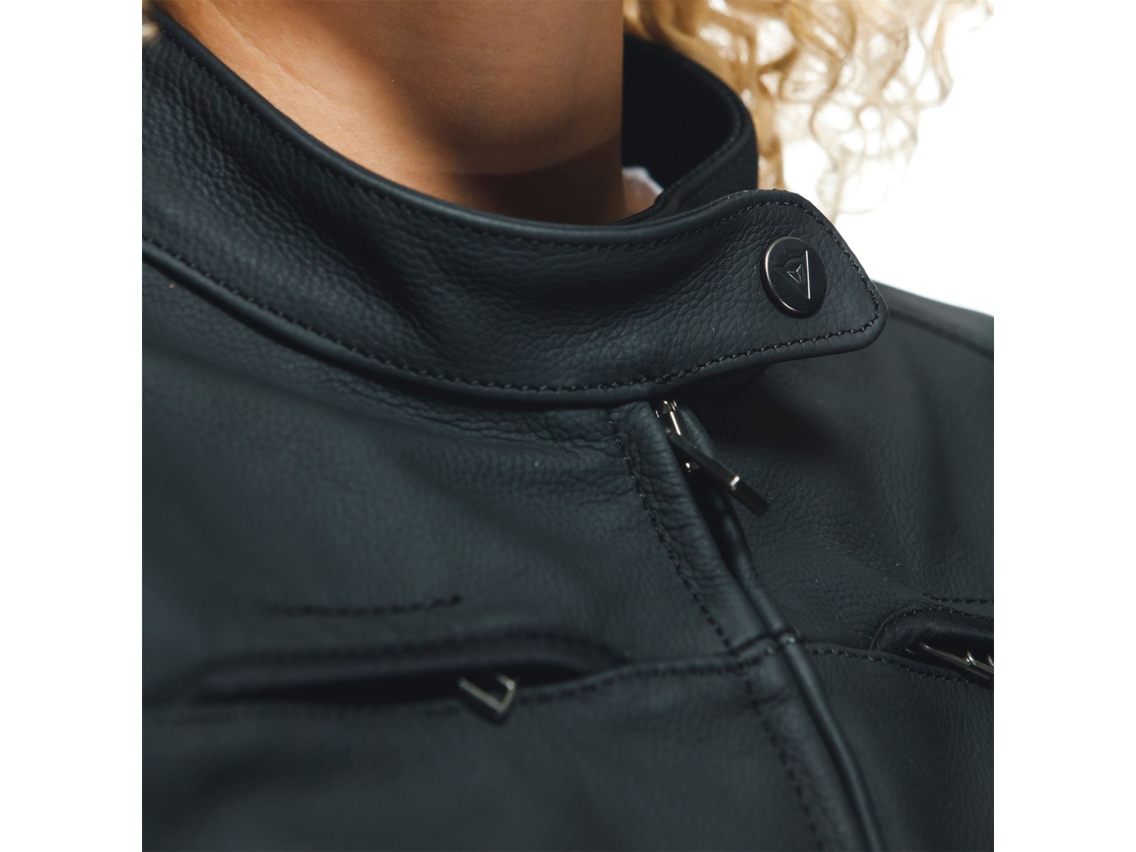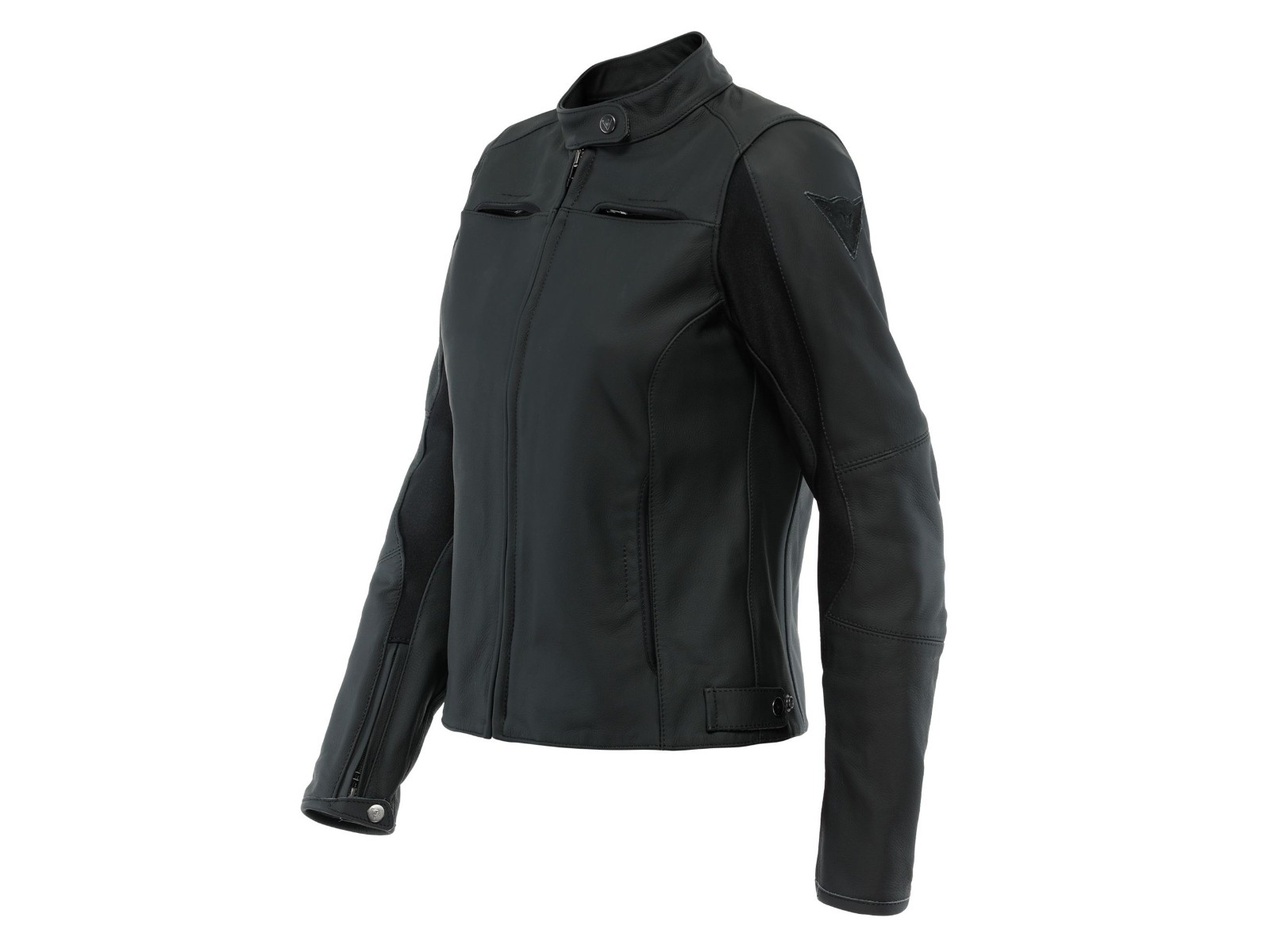 The women's motorcycle jacket Razon 2 made of soft, hard-wearing Cordoba leather has an optimized fit in order to adapt to the anatomy and the typical shapes of the female body. The urban-inspired look is combined with the very high level of protection of the extremely resistant, soft and removable Pro Armor protectors, which are proofed according to EN 1621.1. The soft cowhide is complemented by inserts made of stretch fabric under the arms and a rear area with Microelastic 2.0 technology, which combines the safety of leather with a high degree of flexibility and freedom of movement. Equipped with a back pocket in which a back protector can be inserted, side zip pockets, press studs to adjust the fit on the hips and cuffs and ventilation slots on the chest for optimal thermal comfort even in the hot season.