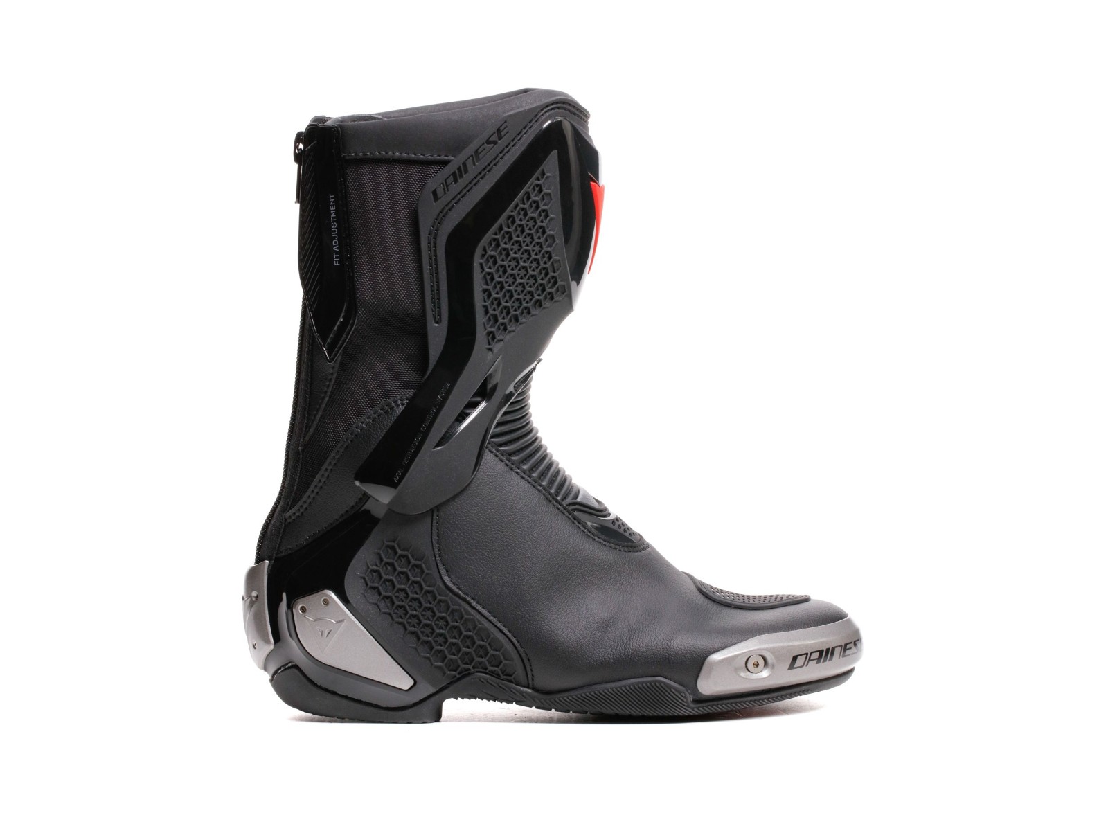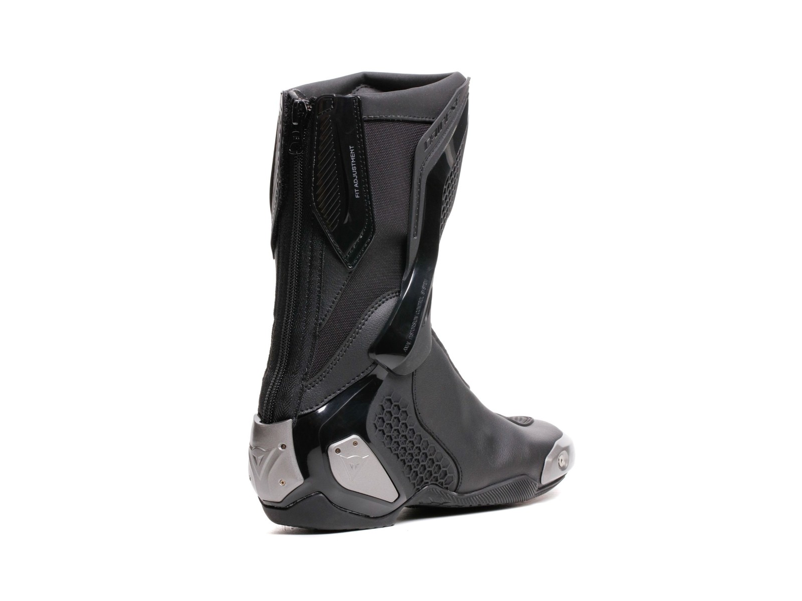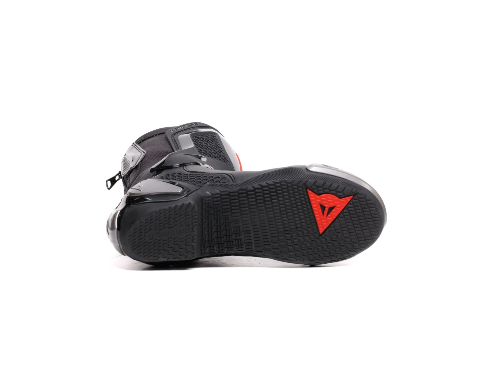 Made of microfiber and D-Stone™ fabric with high-grip TPU D-Axial system, these women’s racing boots, inspired by the top-of-the-range Dainese Axial 2, guarantee maximum comfort and high standards of protection while retaining a sporty and attractive design.The elasticated D-Stone™ fabric ensures maximum resistance and ease of fit. The magnesium sliders on toe and heel are replaceable, a solution that also allows the zipper to be replaced if it breaks. The highest levels of shin and heel safety are ensured by the D-Axial system, which allows for better shock absorption in the event of a fall and also features an external graphic pattern that recalls the Pro-Amor 2. The innovative Groundtrax® asymmetric soles with differentiated gear and brake areas are designed to guarantee grip and heat resistance.A true champion of lightness and performance, to express yourself to the fullest both on the road and on the track.