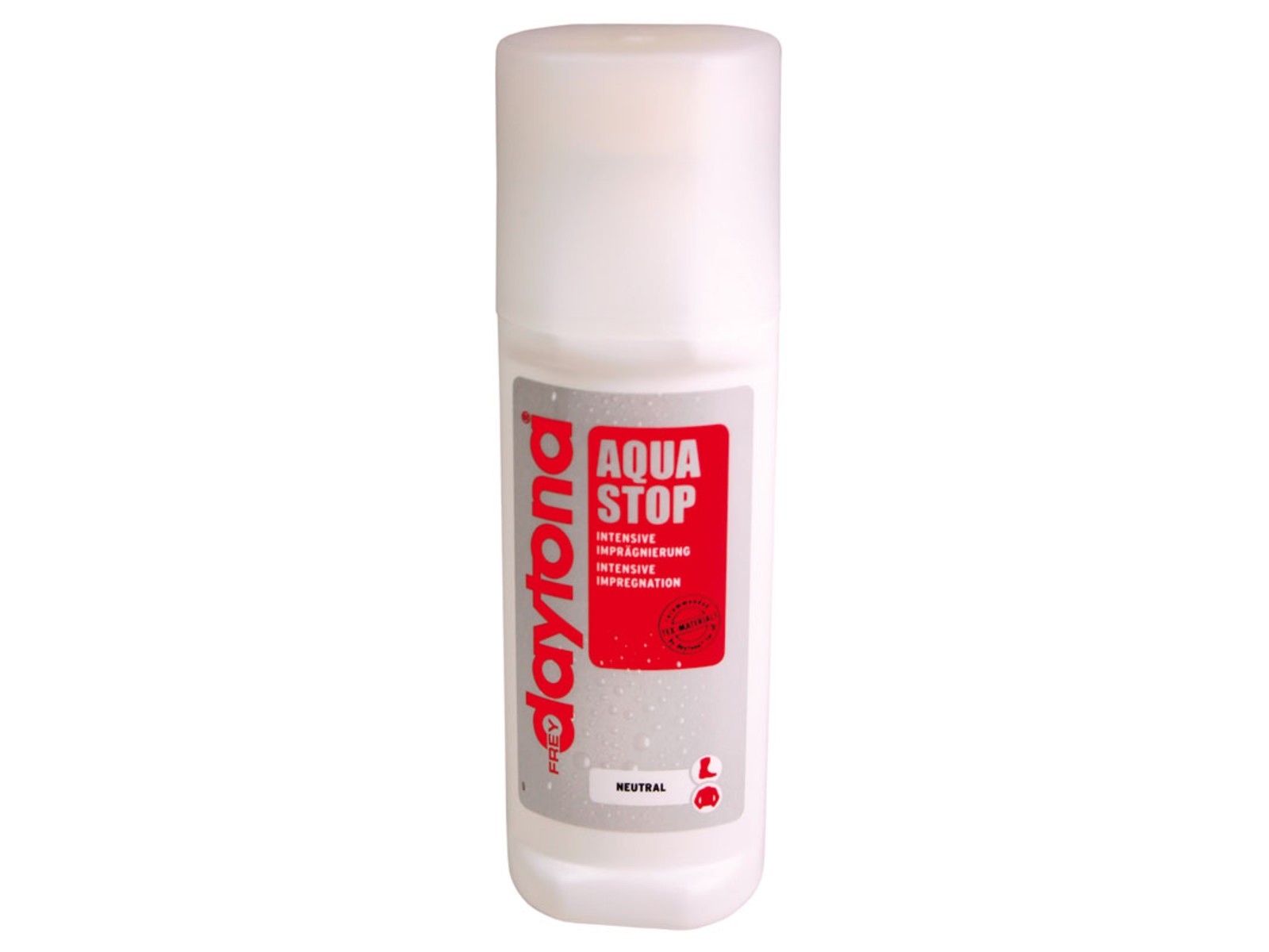 Daytona® Aqua Stop (75 ml) is a very rich, color-intensifying and highly effective impregnation concentrate for all Daytona® styles. Without spray mist, and mild-smelling, it can even be used indoors. Aqua Stop preserves the breathability of all materials (except patent leather), is recommended for GORE-TEX® and is also ideal for waterproofing seams and soles.