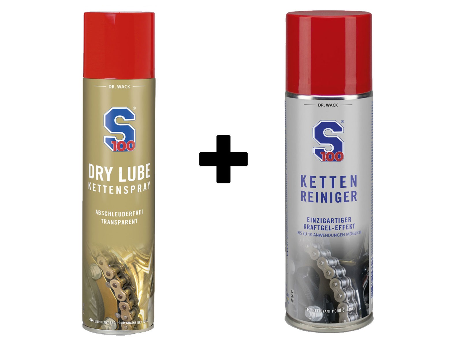 S100 Chain Maintenance Dry Lube Set (Dry Lube Chain Spray 400ml + Chain Cleaner Power Gel 300ml)