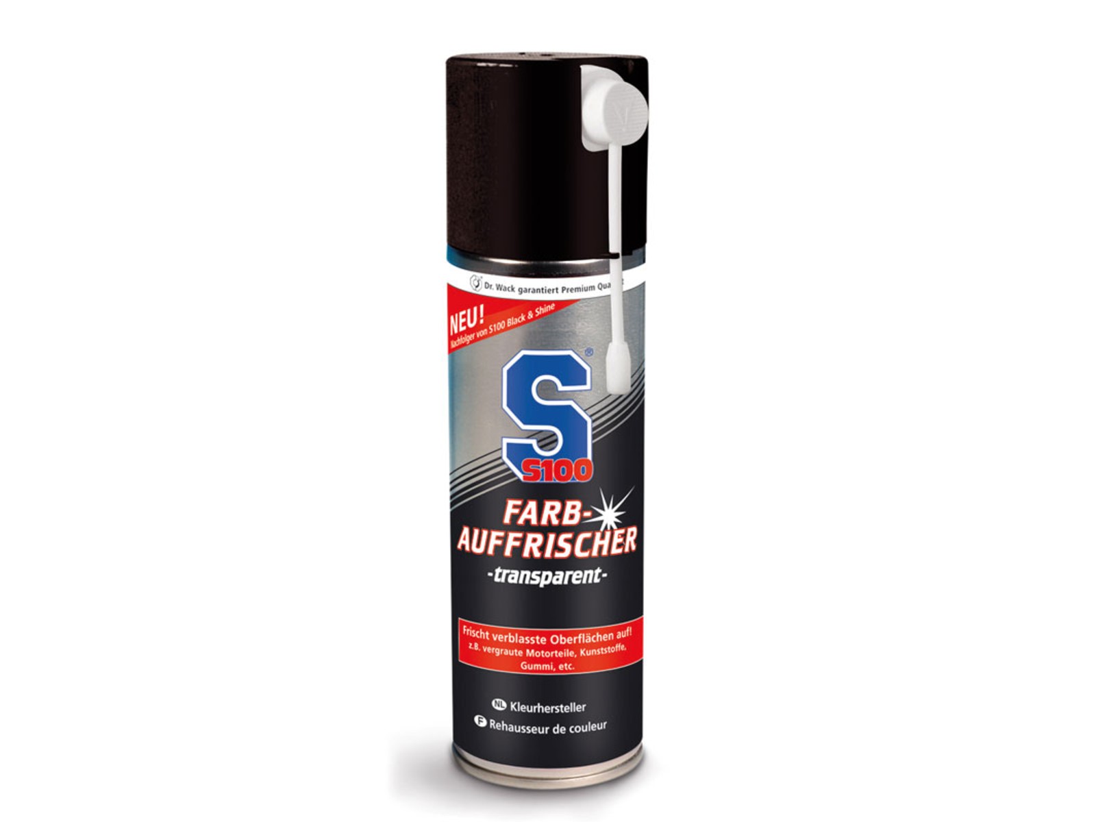 - S100 Colour refresher is a transparent colour refresher for quick, easy and lasting optical refurbishment of sun-bleached surfaces, such as black engine blocks, painted or unpainted metal parts and plastic parts.