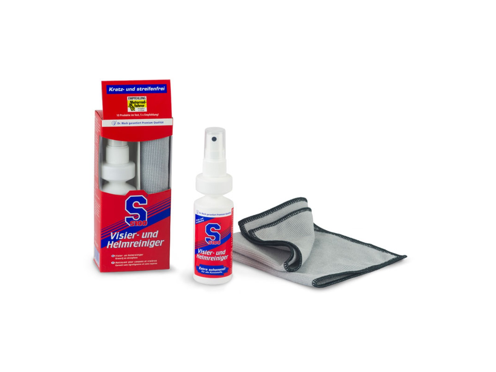 S100 Visor and Helmet Cleaner, incl. microfibre cloth – Scratch and streak-free cleaning for repeated use