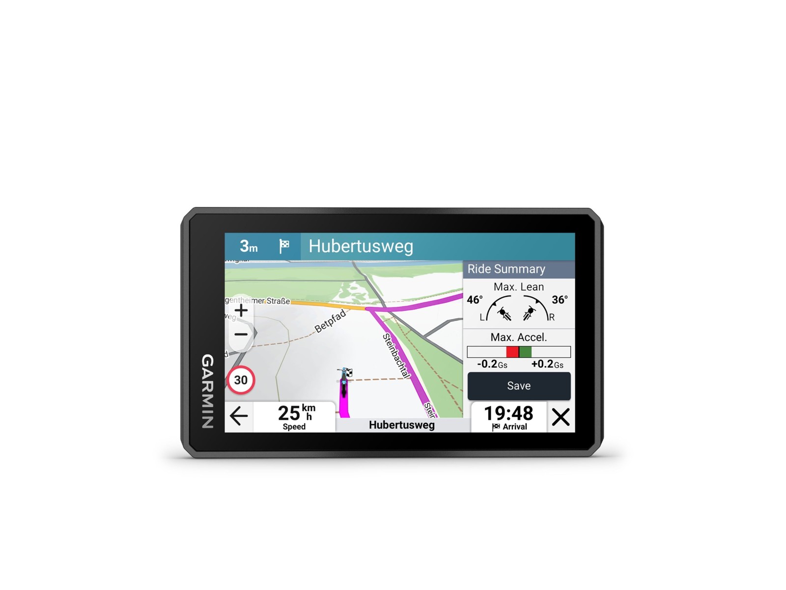 - Lean angle, G-force, and maximum speed recording with detailed views in the Tread® app