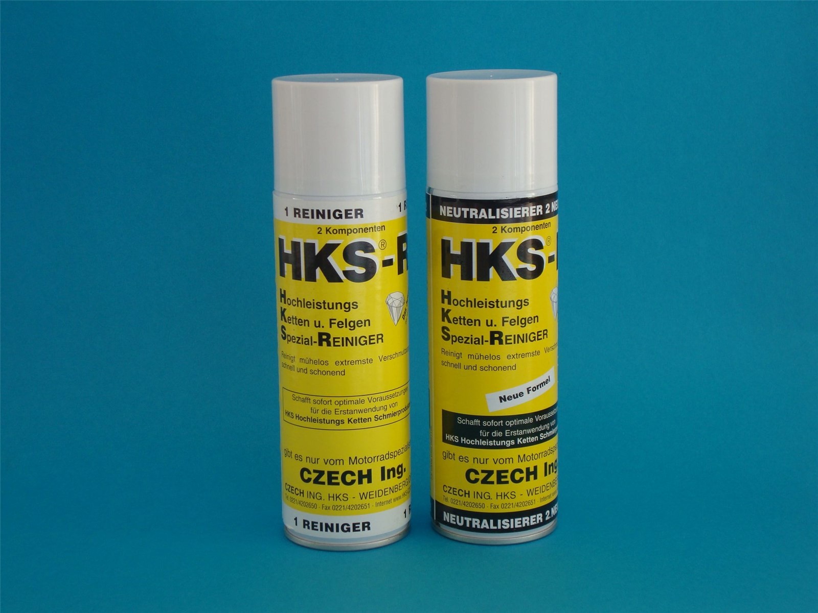 - HKS-R cleaner removes extreme dirt and grease from the chain and rim in just a few minutes.