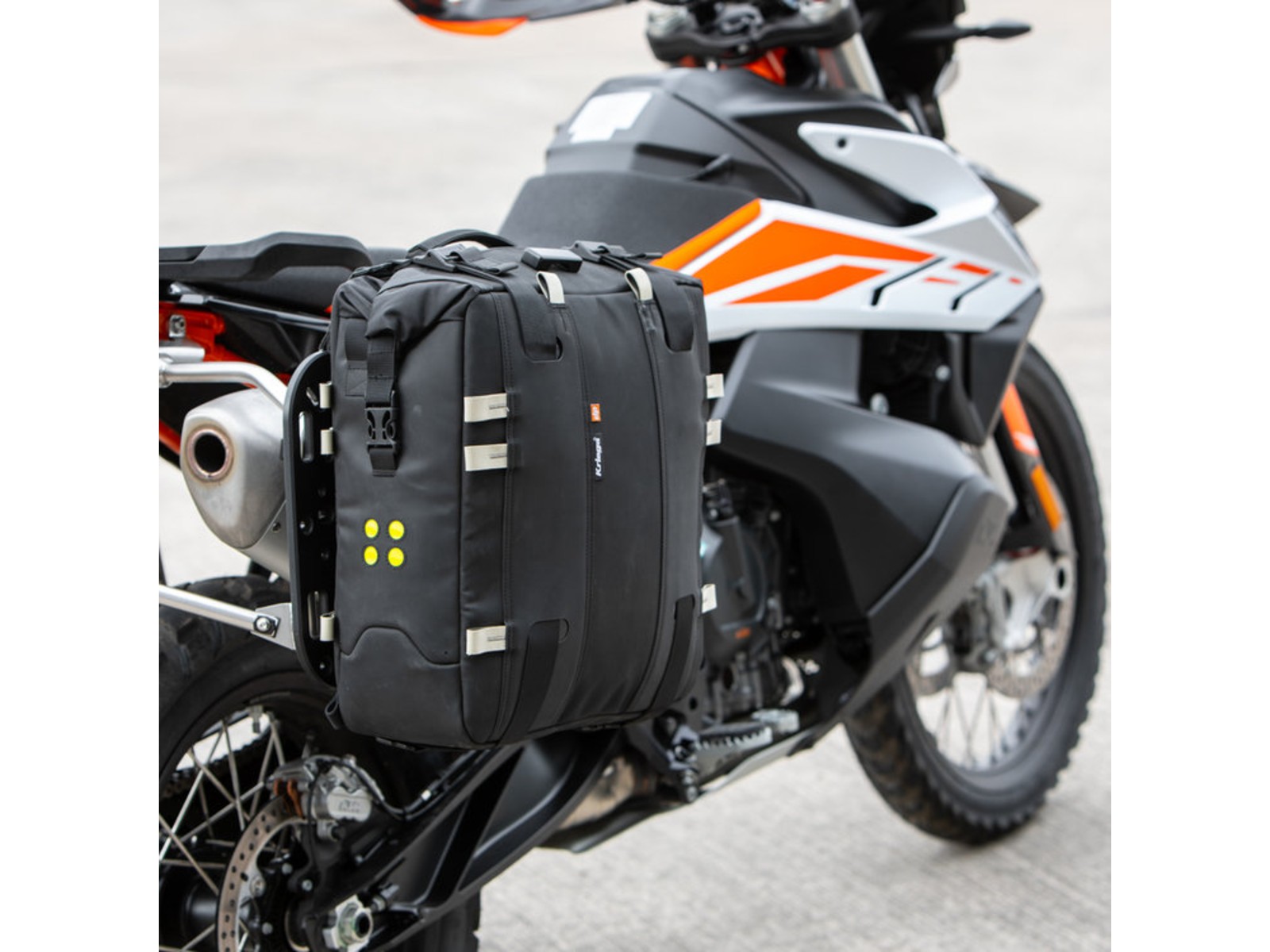 - Offering two easy fit options, either traditional 'over the seat' saddlebag format using OS-STRAPS or as a single pannier by hooking-on to a specially designed OS-PLATFORM. (both sold separately)