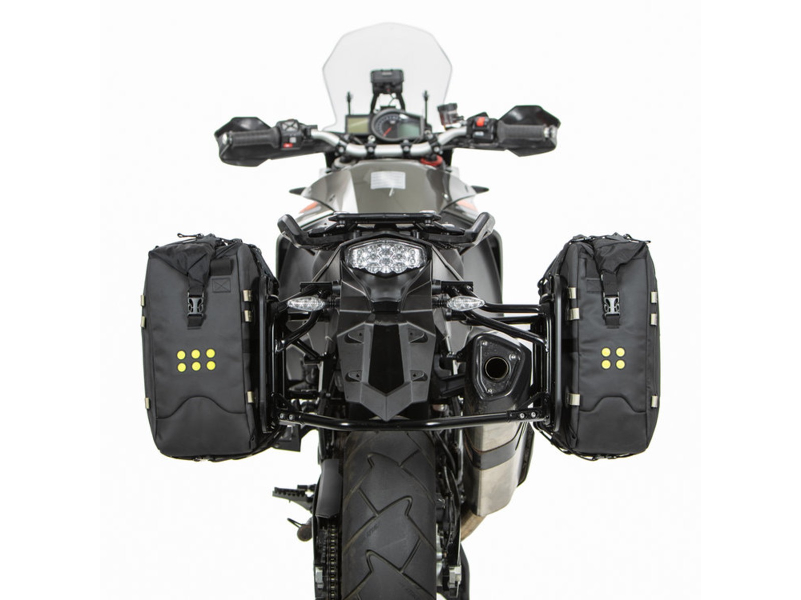 - Traditional ‘over the seat’ saddlebag format, using OS-STRAPS
