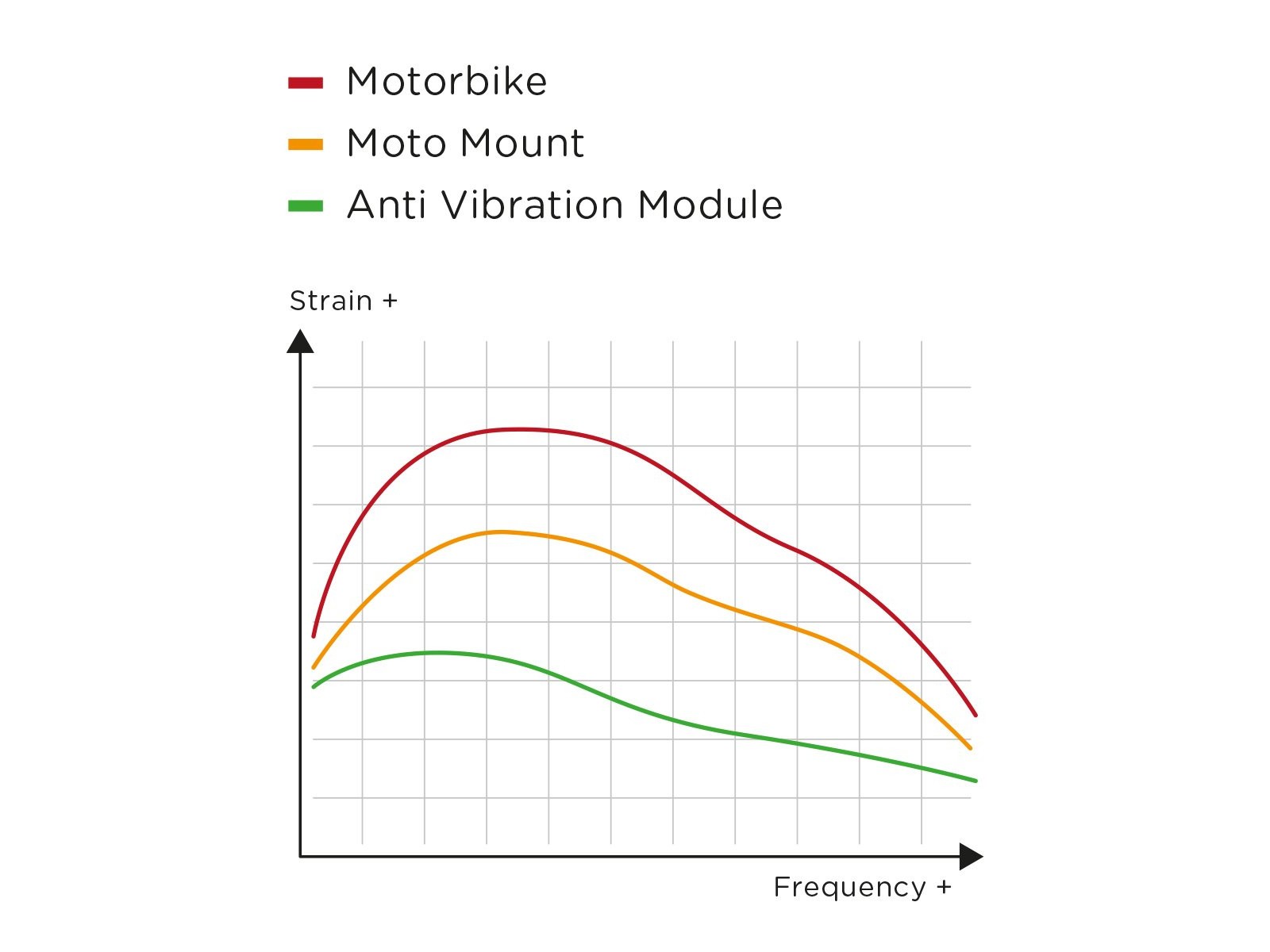 Use the SP Connect ™ ANTI VIBRATION MODULE to further reduce vibrations in different frequency ranges. The development of the new product is a reaction to the complexity of newer smartphone models, whose camera systems consist of increasingly sensitive components. The specially developed elastomer inlay dampens in all directions and causes up to 60% less vibrations (e.g. from the motorcycle engine) to reach your smartphone, which could affect the mechanical image stabilizer of the camera. This protects your smartphone, but it remains stably and quietly mounted, so that it is easy to navigate while driving.