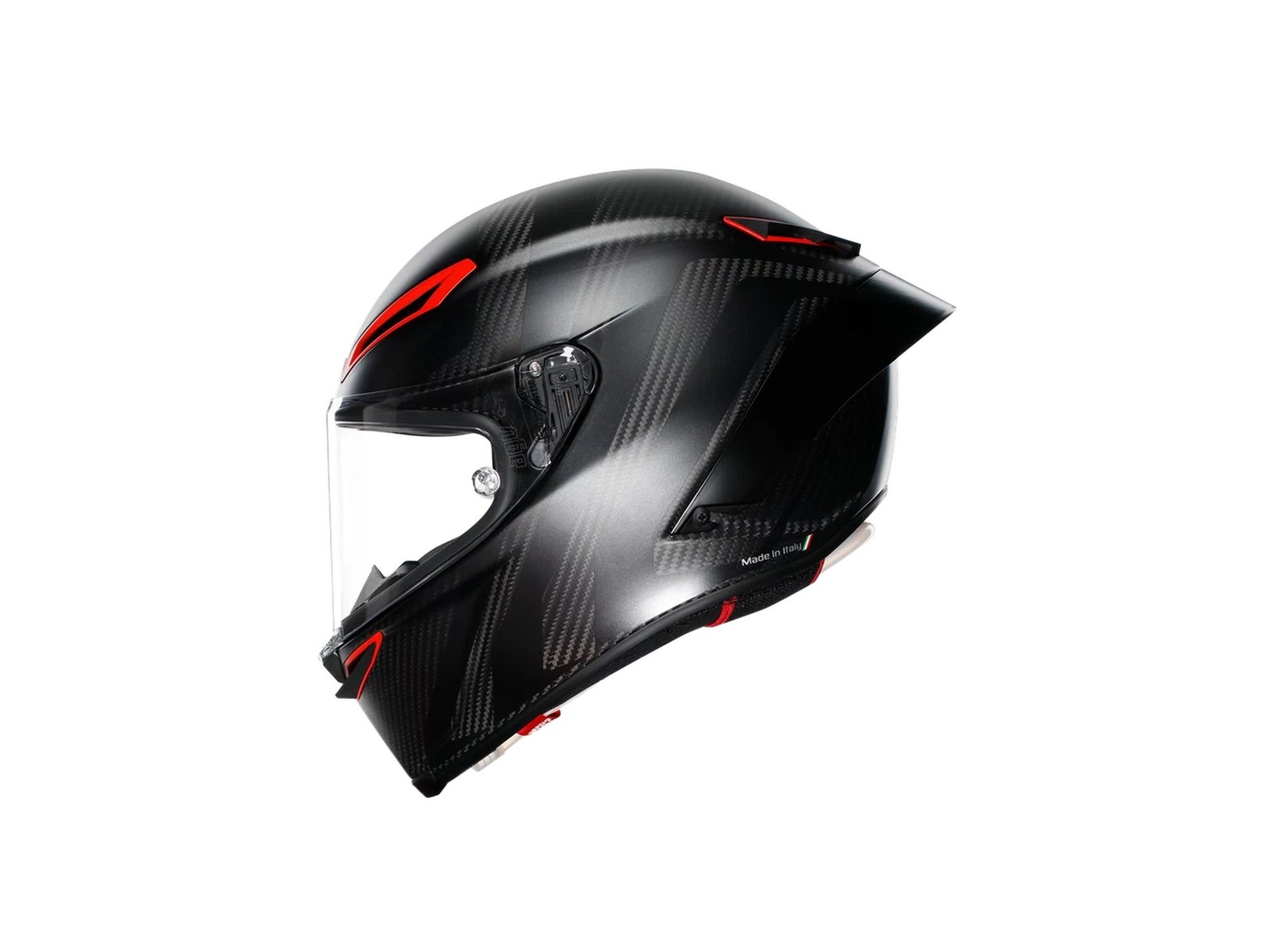 Jedes Detail ist auf absolute Leistung ausgelegt. Die Schale aus 100 % Extreme Carbon-Carbonfaser garantiert eine extreme Leichtigkeit, damit man beim Tragen niemals ein Schweregefühl spürt. Seine Formen und die Lüftungsschlitze aus Metall wurden im Windkanal analysiert und von den AGV-Athleten getestet, um – auch dank dem innovativen Profil des hinteren PRO-Spoilers – die beste aerodynamische Durchdringung und maximale Stabilität bei hohen Geschwindigkeiten zu erzielen. Das Ultravision-Visier der optischen Klasse 1 ist dank einer Stärke von bis zu 5 mm wesentlicher Bestandteil des Schutzes und ermöglicht eine Panoramasicht von 190° sowie ein vertikales Sichtfeld von 85°. Dies bedeutet, die Rennstrecke, die Gegner und die Hindernisse deutlicher und vor allen anderen zu sehen. Auch in Rennposition.