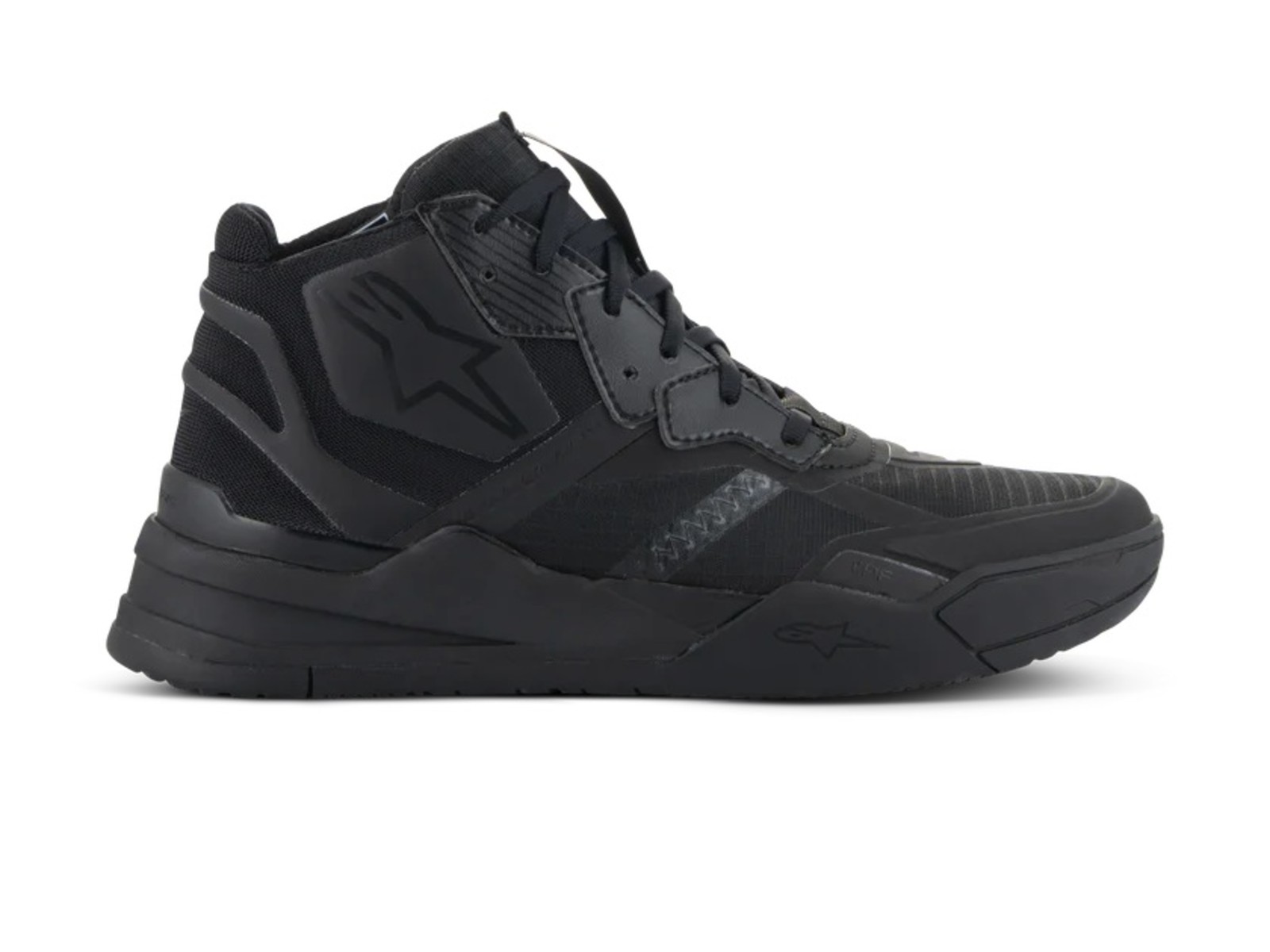 Der Speedflight Performance Motorradschuh wurde von populären Trends inspiriert. Er ist eine Kombination aus einem sportlichen Straßenschuh und technischem ausgefeiltem Schutz für das Motorradfahren und ist somit der perfekte Motorradschuh. Die bequemen Speedflight-Schuhe sind die ideale Ausrüstung für kurze Fahrten und Pendler und lassen sich bequem den ganzen Tag tragen. Die Speedflight-Schuhe bestehen aus einem leistungsstarken Ripstop-Obermaterial mit nahtlosen Verstärkungseinsätzen und einem geformten, halbstarren Fersenteil mit eingespritztem Schaumstoff und haben ein fortschrittliches und leichtes Gehäuse. Verstärkt wird der Schuh durch die Alpinestars TPF Transversal Protection Frame Zwischensohle, die zwischen einer Gummisohle mit doppelter Dichte und vorderen Protektoren, einer Komfortschicht und der langlebigen und komfortablen EVA-Zwischensohle mit seitlichen Stabilisatoren liegt. Die Sohle ist mit einer asymmetrischen TPU-Fersenkappe ausgestattet, die für zusätzlichen Schutz und Stabilität sorgt, sowie mit einer herausnehmbaren OrthoLite®-Einlegesohle für hohe Atmungsaktivität und ganztägigen Gehkomfort. Die Sohle selbst weist einen „aggressiveren“ Absatz von 10 mm auf, d. h. den Höhenunterschied zwischen Ferse und Zehen des Fahrers, was einen hohen Laufkomfort abseits des Motorrades ermöglicht. Insgesamt bietet der Speedflight mit seinem Profil, der komprimierten EVA-Zwischensohle und den hohen Seitenwänden eine komfortable Passform und verbessert die Stabilität des Fußes für mehr Gehkomfort, aber auch für mehr Schutz und Sicherheit beim Motorradfahren. Leistungsstarkes Ripstop-Obermaterial mit nahtlosen Verstärkungen und Rahmen. Geformtes, halbstarres Fersenteil mit eingespritztem PU für Komfort und zusätzlichen Schutz. Elastische Zunge für eine präzise Passform. Verstärkungsschicht auf der Innenseite. Integriertes Schaltpolster. Dedizierte Sohle und Laufsohle. Langlebige, komfortable, komprimierte EVA-Zwischensohle mit seitlichen Stabilisatoren. 10 mm Absatz, der das Gehen erleichtert. Asymmetrische TPUU-Fersenkappe. Alpinestars' TPF-Zwischensohle. Exklusive Gummisohle mit doppelter Dichte, mit Protektoren an der Vorderseite und einer speziell für Motorradfahrer entwickelten Griffigkeit und Form. OrthoLite®-Einlegesohle für verbesserten Gehkomfort. Halteriemen mit Schlaufe für die Schnürsenkel. Weicher, bequemer Rand für die Achillesferse. Knöchelscheiben mit doppelter Dichte und äußerer Polsterung. Innerer Zehenraum und Fersengegenschutz sind unter dem Obermaterial geschichtet, um Haltbarkeit, verbessertes Gefühl und Leistung zu gewährleisten.