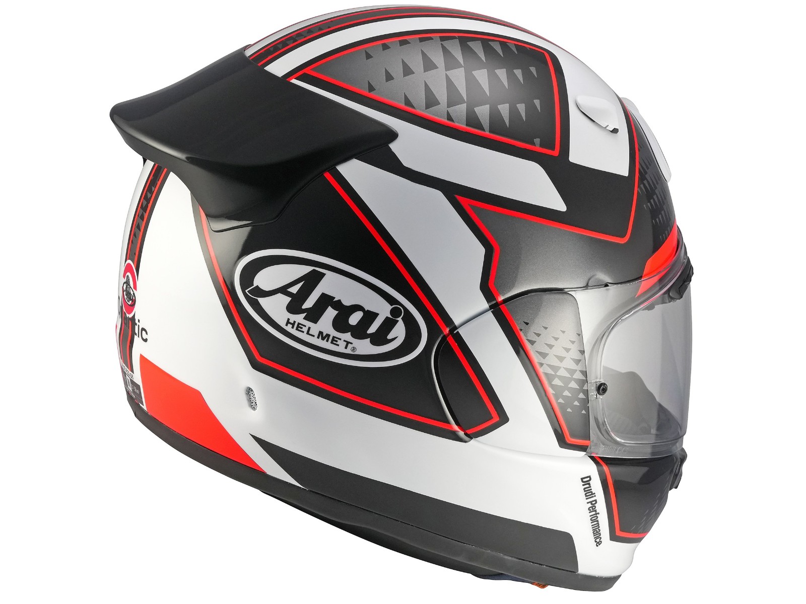 Wie jeder Arai wurde auch der Quantic in erster Linie zum bestmöglichen Schutz entwickelt. Gefertigt von Hand ist die äußere Schale extrem stabil – bei erheblicher Gewichtsreduktion. Die glatte, runde Form steht für Arai und wurde vor allem entwickelt, um das "Abgleiten" zu ermöglichen und damit die Kräfte des Aufpralls zu verteilen. Der Quantic nutzt die gleichen aerodynamischen und schützenden Eigenschaften wie die Arai-Rennhelme, mit all der Erfahrung und dem Know-how, das über Millionen von Straßenkilometern gesammelt wurde. Er „gleitet“ sauber und effizient durch die Luft und umhüllt den Fahrer mit Luxus. Er ist der Helm der neue Wahl für Fahrer, die die beste Leistung von einem Helm erwarten – in Bezug auf Schutz, Komfort und einfache Handhabung, Tag ein, Tag aus – ohne Kompromisse. Um das Auf- und Abnehmen zu erleichtern verfügt der Quantic über eine 5 mm breitere Helmöffnung. Das VAS MAX Vision Visier ist einer Pinlock Scheibe ausgestattet. Die Innenausstattung aus gebürstetem Nylon ist herausnehmbar, verfügt über das Facial Contour System (FCS) und eine Kabeltasche in der Nackenrolle. Außerdem ist er mit dem Emergency Release System (ERS) ausgestattet.