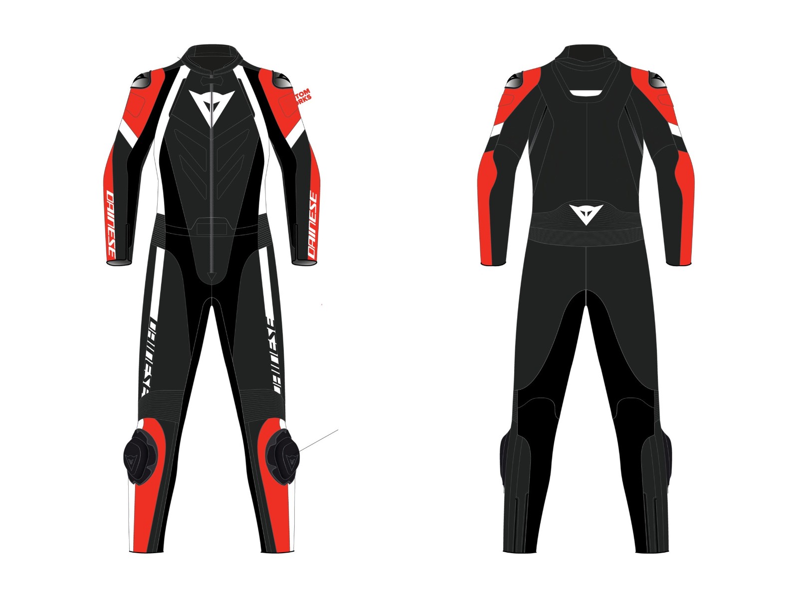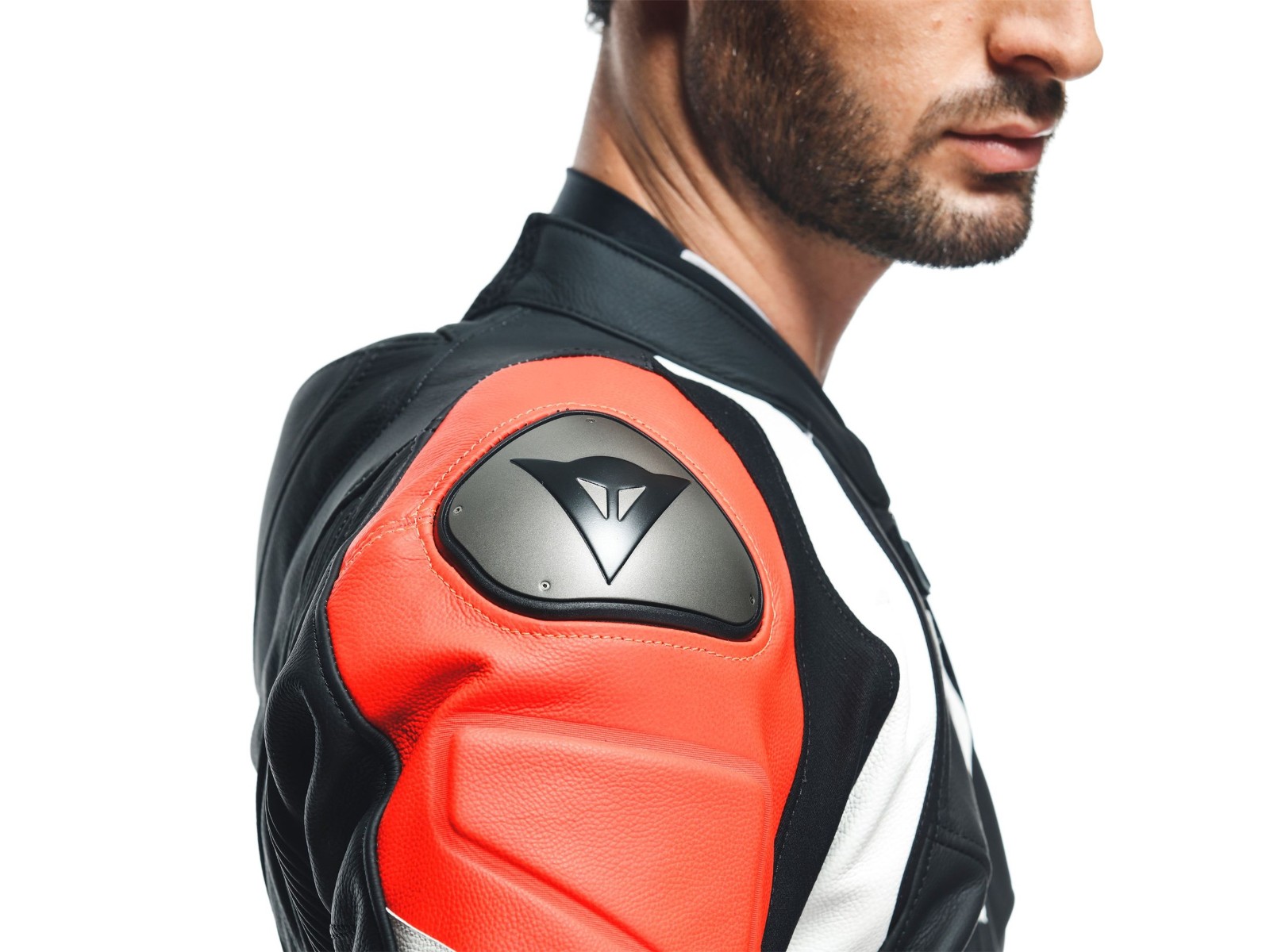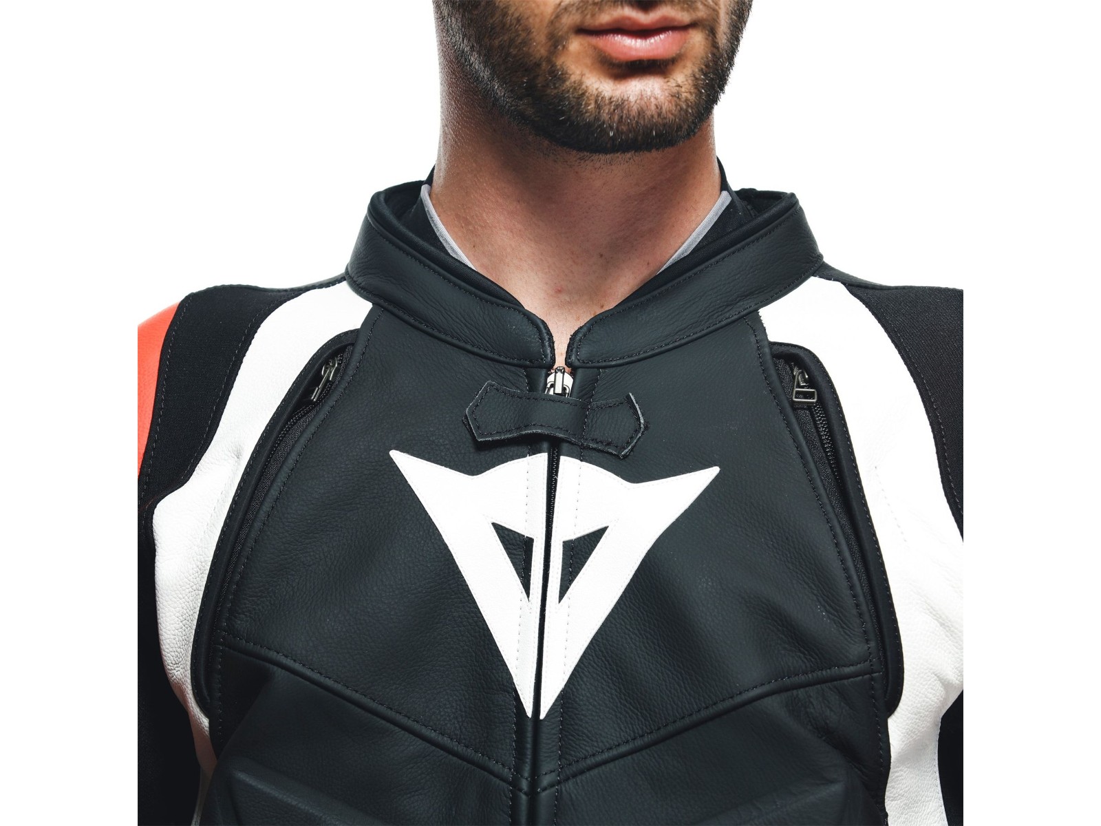 - Zweiteiliger Motorradanzug aus Tutu-Rindsleder, mit Aluminiumslidern an den Schultern, aerodynamischem Höcker und elastischen Einsätzen für maximale Bewegungsfreiheit. Eine Dainese-Ikone.