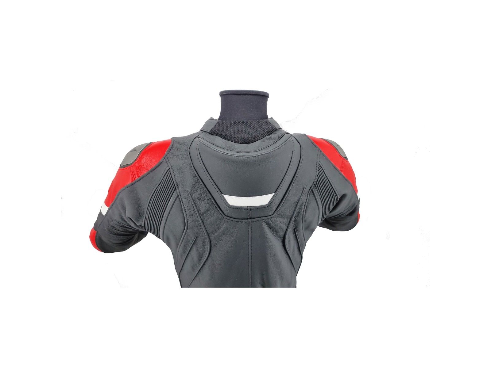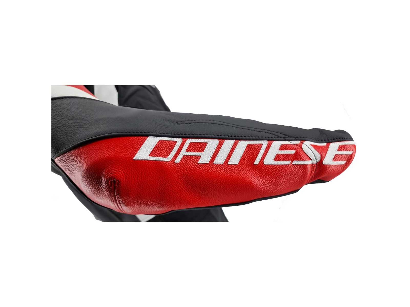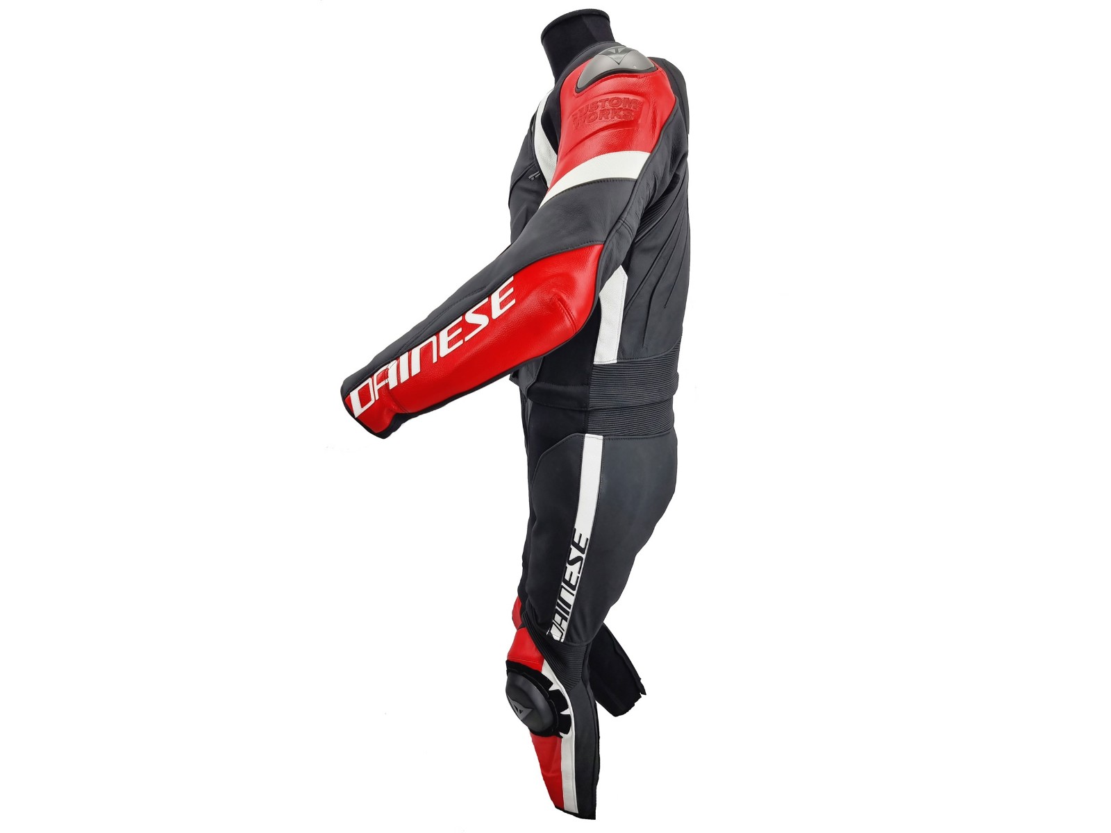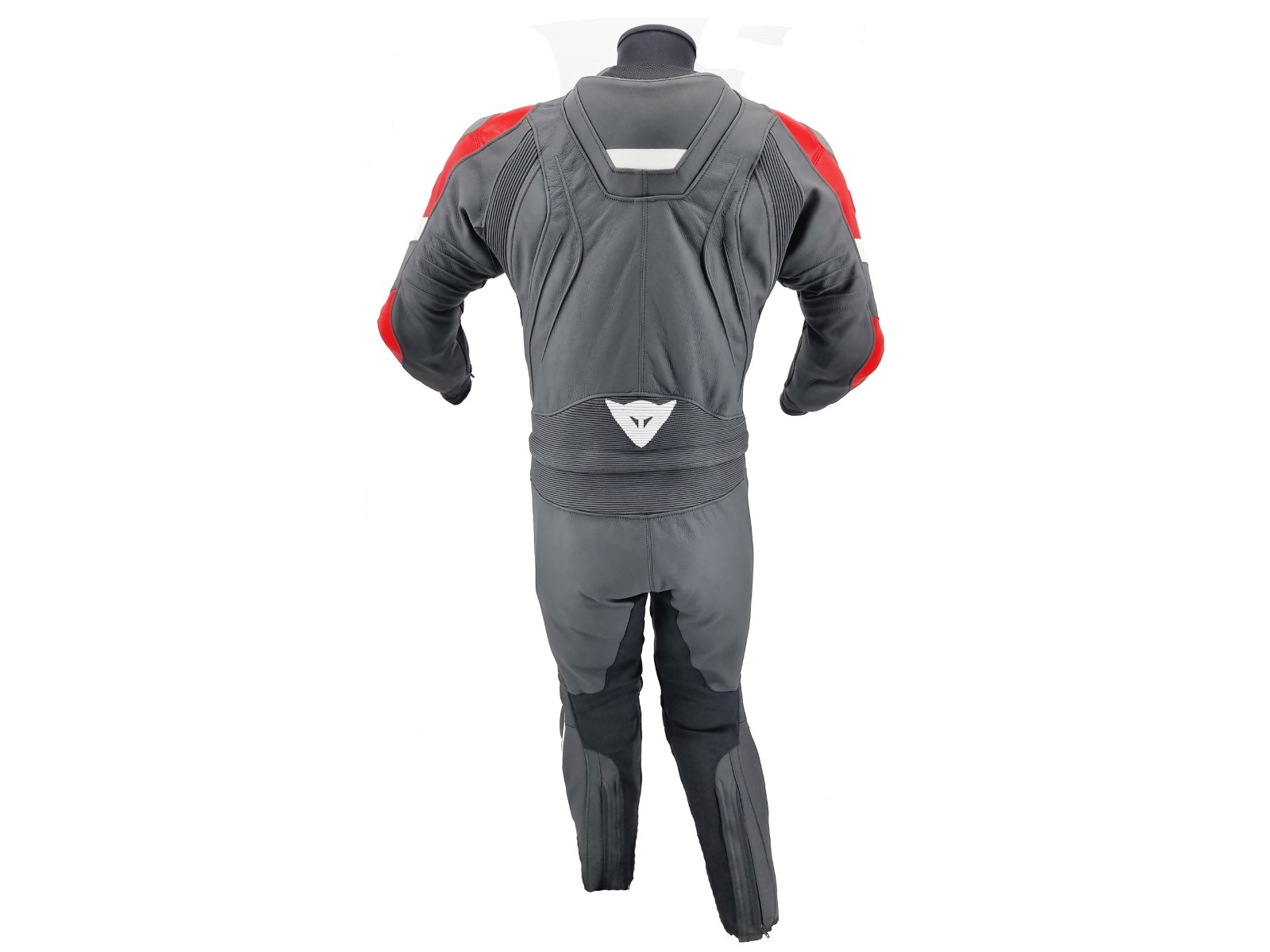 - Zweiteiliger Motorradanzug aus Tutu-Rindsleder, mit Aluminiumslidern an den Schultern, aerodynamischem Höcker und elastischen Einsätzen für maximale Bewegungsfreiheit. Eine Dainese-Ikone.