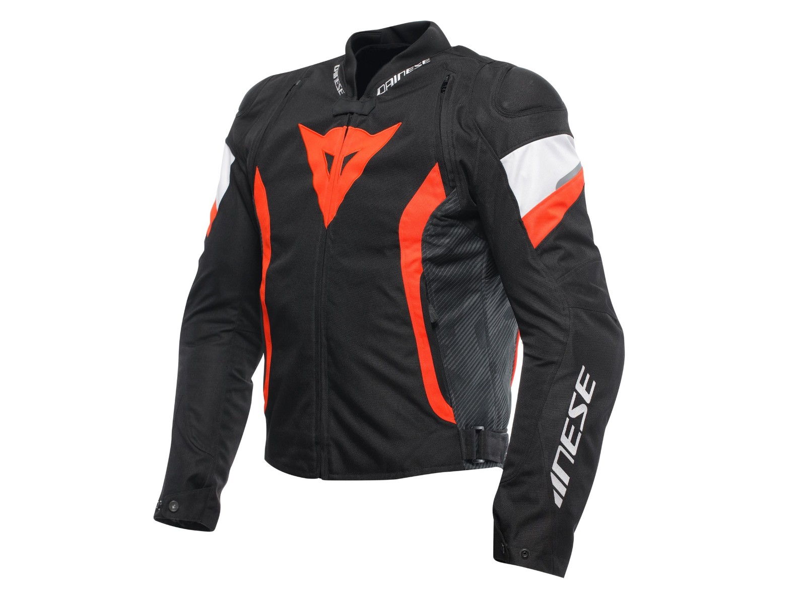 Die Avro 5 Tex Jacket ist die Stoffentwicklung einer der Sportikonen von Dainese und wurde für alle Motorradfahrer entwickelt, die ein sportliches und vielseitiges Kleidungsstück suchen, das von den Modellen der MotoGP™-Profis inspiriert ist. Die nach EN 17092 Klasse A Avro 5 Tex Jacket verfügt über ein herausnehmbares Futter und Belüftungsreißverschlüsse, die dem Fahrer auch bei hohen Temperaturen maximalen Wärmekomfort bei Motorradausflügen garantieren.Klimakomfort trifft Sicherheit: Avro 5 Tex verfügt über Verbundprotektoren und PU-Platten an den Schultern und PU-Platten an den Schultern sowie Taschen für die Aufnahme von Brust- und Rückenprotektoren. Die Integration praktischer Details wie das Veloce Racing Neck System – eine extrem komfortable Kragenkonstruktion Die Integration praktischer Details wie das Veloce Racing Neck System – eine extrem bequeme Kragenkonstruktion, die von den Anzügen der Dainese Profifahrer in der MotoGP™ Weltmeisterschaft inspiriert ist – sowie Verstellsysteme an den Handgelenken und der Hüfte sowie ein universeller Verbindungsreißverschluss zwischen Jacke und Hose erhöhen den Tragekomfort zusätzlich. Die Jacke ist außerdem mit einer wasserdichten Innentasche ausgestattet, um wichtige Gegenstände bei schlechtem Wetter zu schützen. Wetter zu schützen.