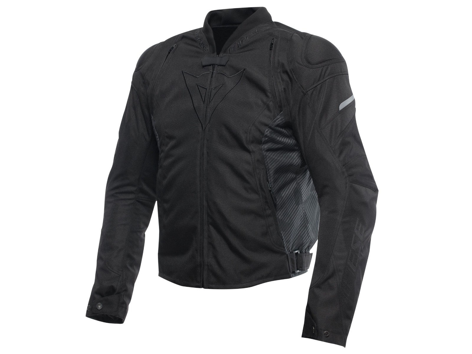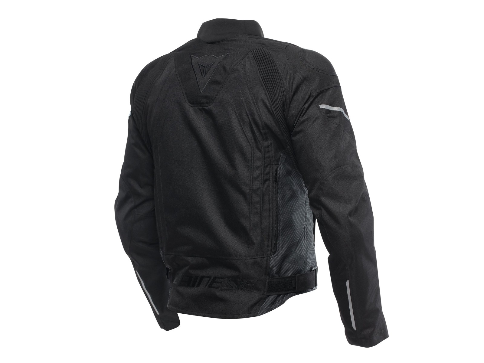- Motorradjacke aus Stoff mit herausnehmbarem herausnehmbarem Futter, Belüftungsreißverschluss, Verbundprotektoren, PU-Platten und Taschen zur Aufnahme von Brust- und Rückenprotektoren Protektoren. Ebenfalls integriert ist das Veloce Racing Neck System, Verbindungsreißverschluss zur Anpassung Dainese-Hosen und eine wasserdichte Innentasche Tasche. Zertifizierung nach EN 17092 Klasse A.