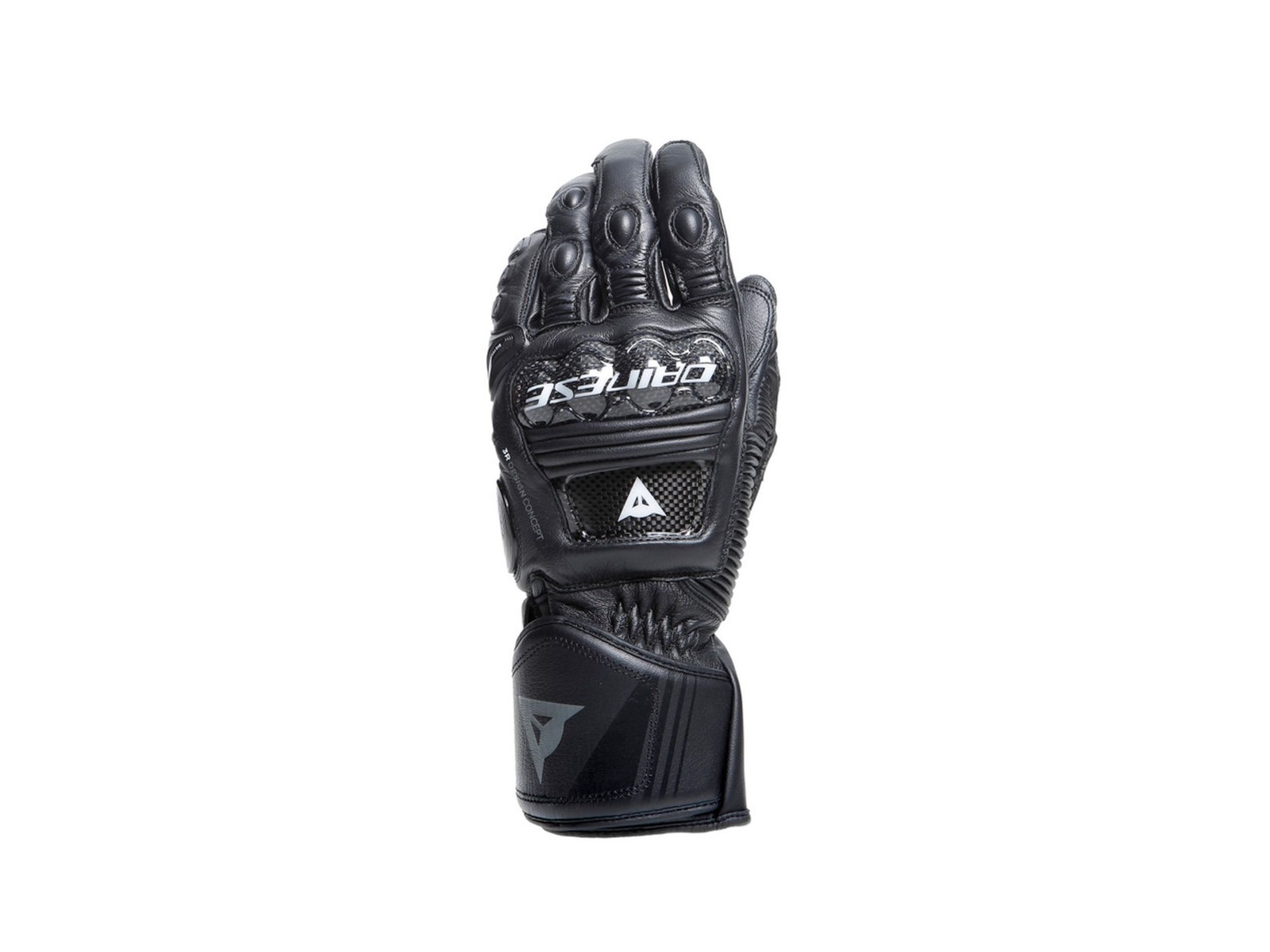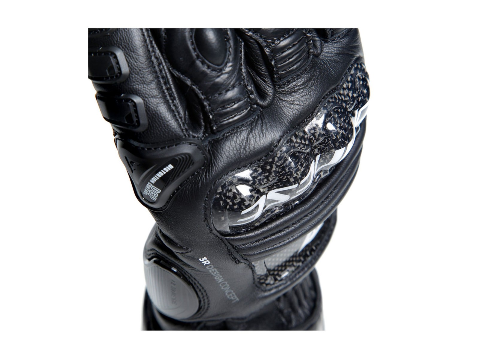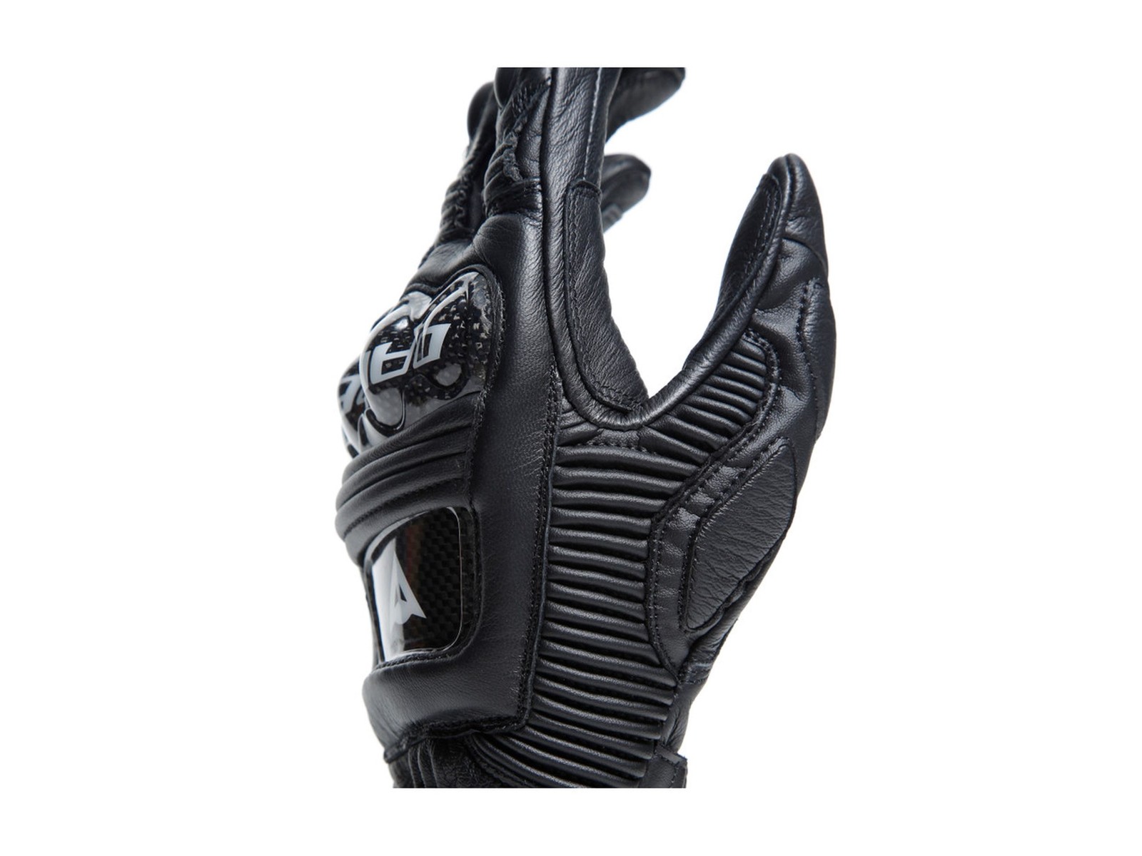 - Racing-Motorradhandschuhe aus Schaafsleder mit Knöchelprotektoren aus Carbon, Polyurethan-Einsätzen und vorgeformtem, thermogeformtem Schaft.