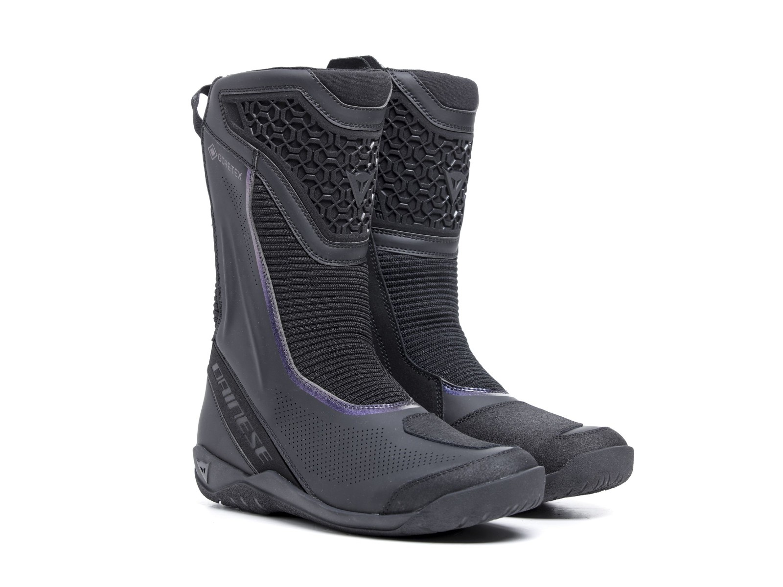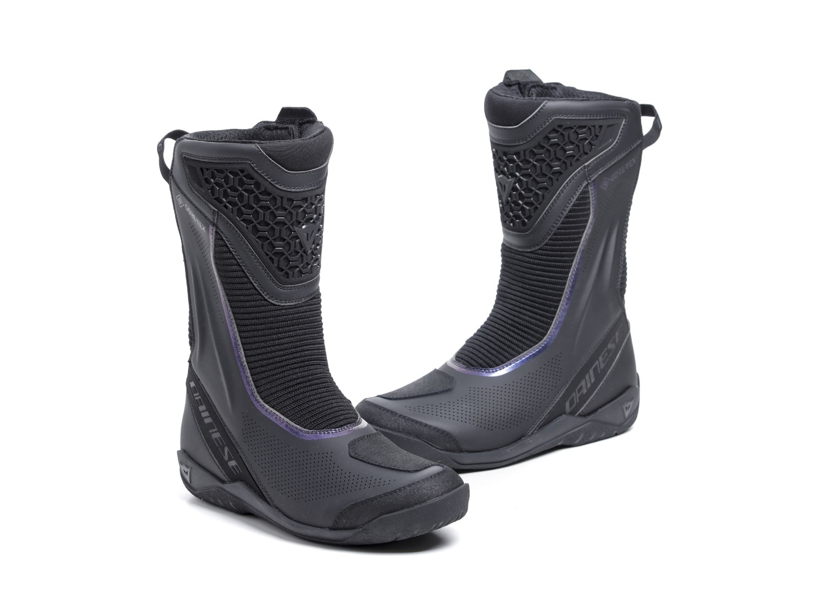 - Vier-Jahreszeiten-Motorradstiefel mit Gore-Tex® wasserdichter Membrane, perforiertem Gewebe und großen Stretcheinsätzen.