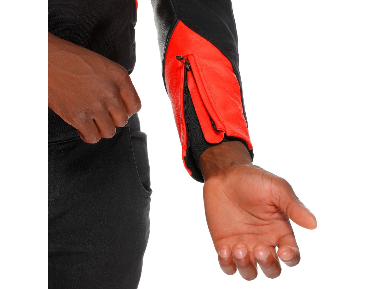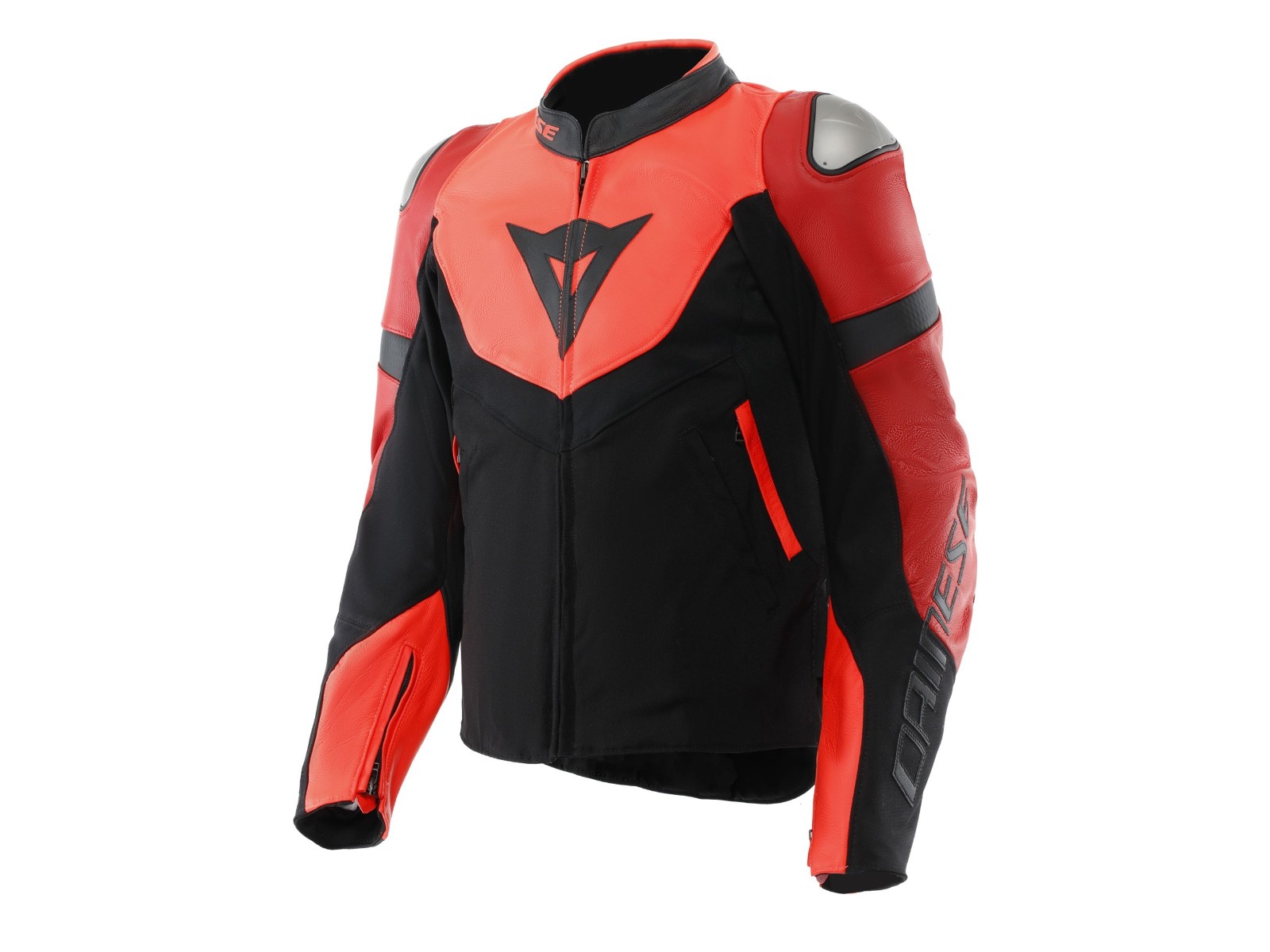 Dainese Iperattiva Tex Jacke Leder-Textil neon-rot/schwarz