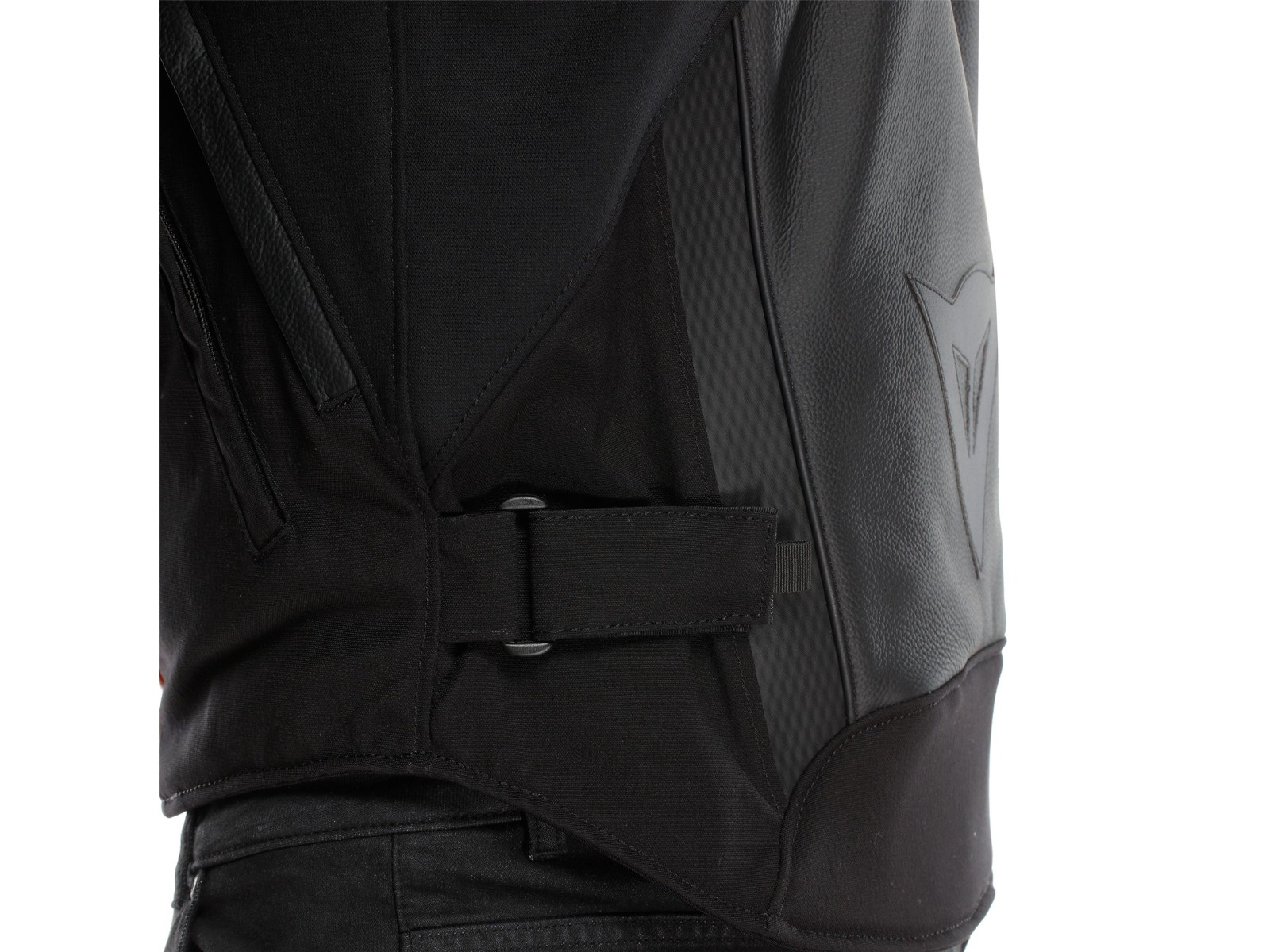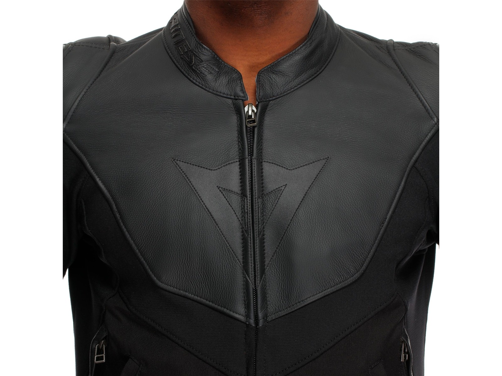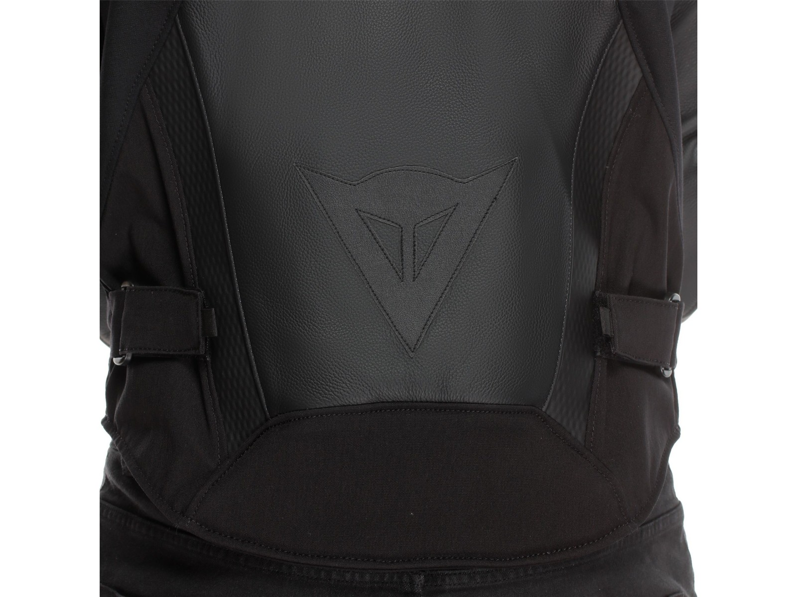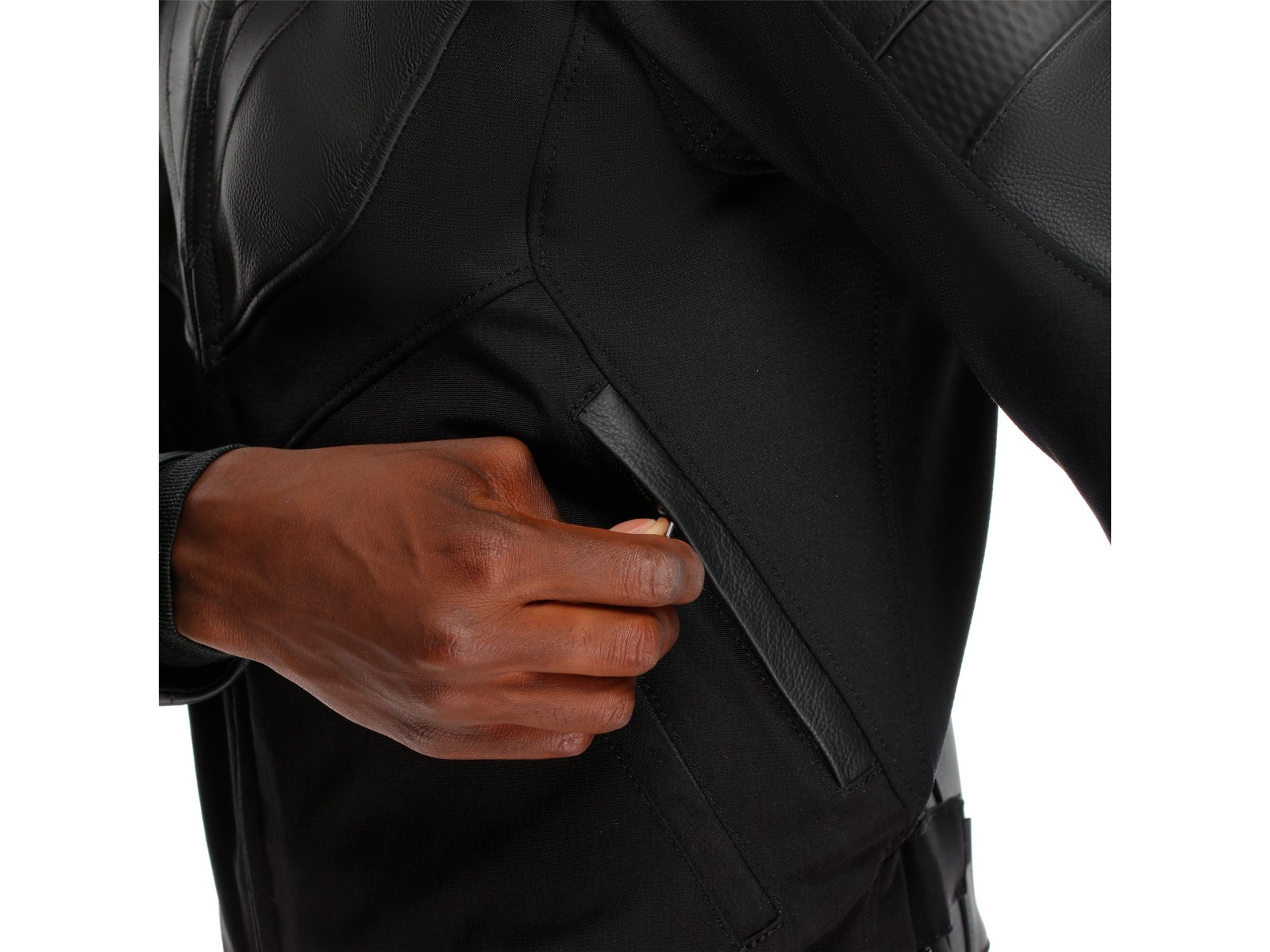 Das Modell ist nach EN 17092 Klasse AA geprüft und mit weichen, nach EN 1621.1 Stufe 2 Pro-Armor-Protektoren an Ellbogen und Schultern ausgestattet. Es lässt sich bequem über der Airbag-Vorrichtung Dainese Smart Air tragen, ohne dass man eine Größe größer kaufen muss. Zudem sind Taschen für den Einsatz des Rückenprotektors vom Typ G und des Brustprotektors vorhanden. Durch den richtigen Sitz der Ärmel wird verhindert, dass die Protektoren bei einem Sturz an eine falsche Stelle rutschen. So kann sich der Fahrer jederzeit auf maximalen Schutz verlassen. Zudem ermöglichen die Schlaufen, mit denen der Smart Air an der Jacke befestigt ist, das An- und Ablegen des Airbags mit einer einzigen Handbewegung und garantieren, dass der Airbag immer in der richtigen Position unter der Jacke bleibt. Für aktive Sicherheit sorgen auch die reflektierenden Einsätze an den Ärmeln und am Rücken.
