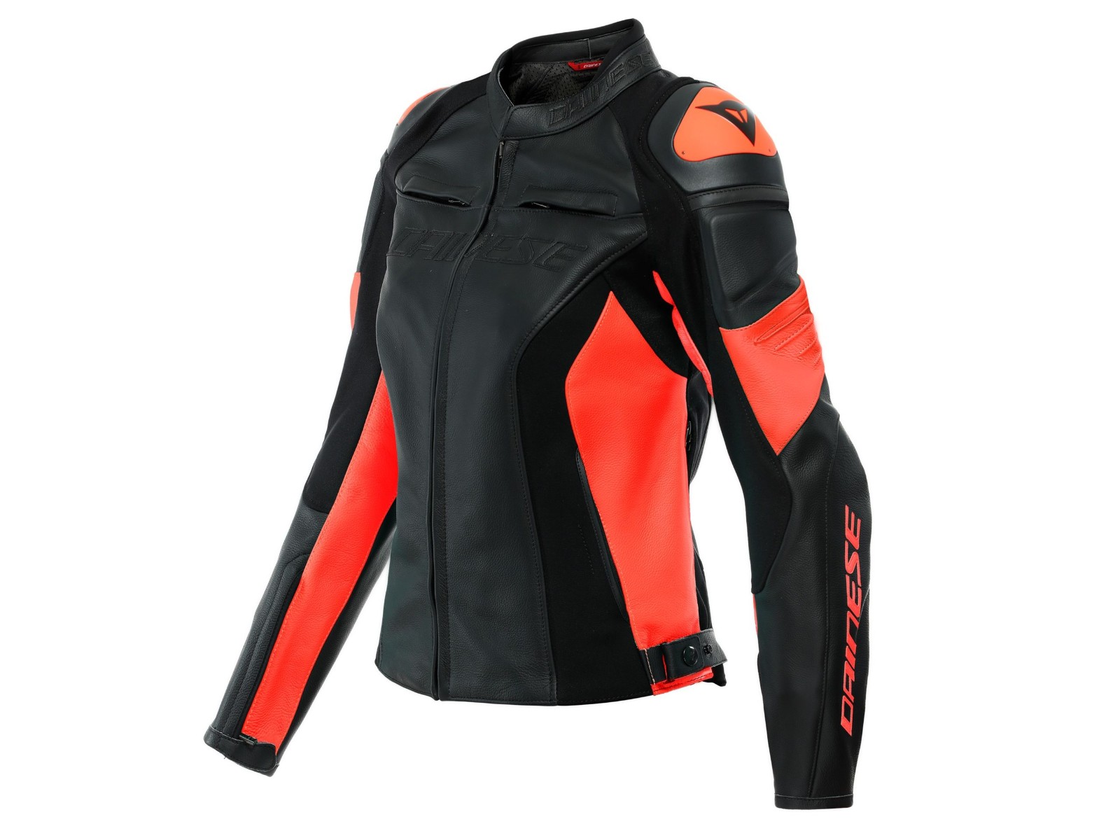 Dainese Racing 4 Lady Lederjacke schwarz/neon-rot