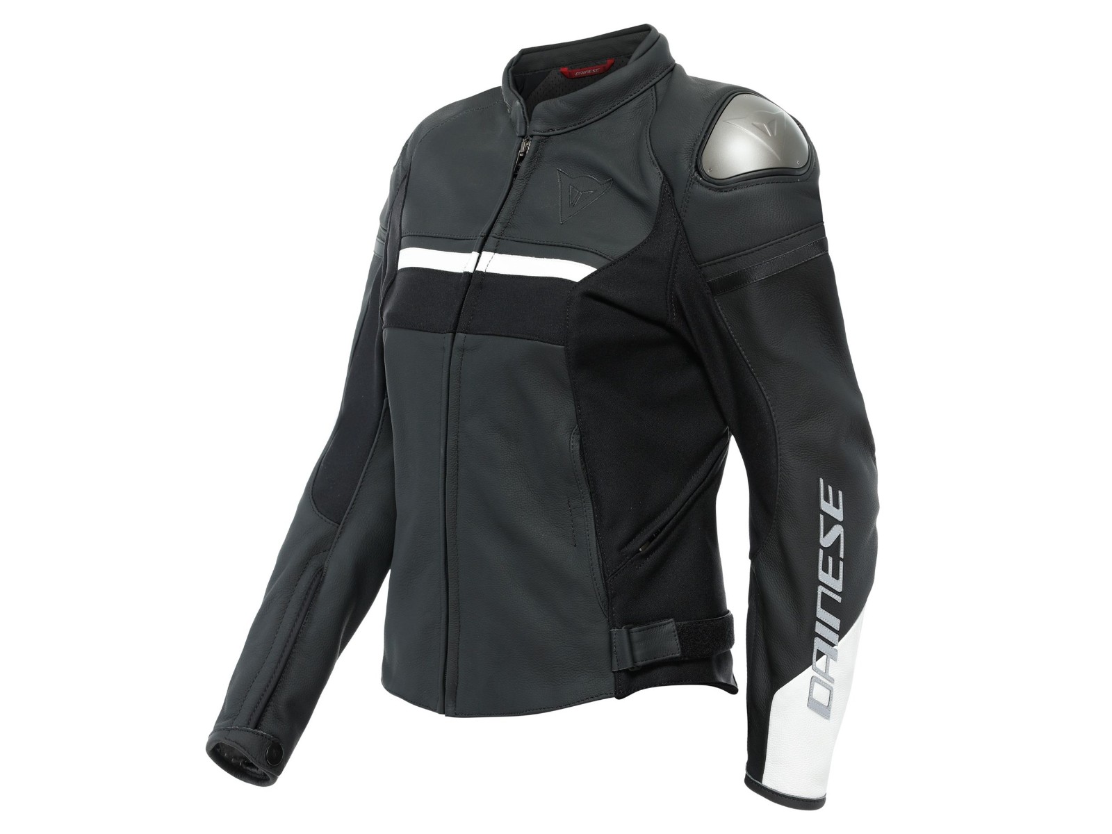 - Die Damen-Motorradlederjacke Dainese Rapida Lady ist so konzipiert, dass sie sich der Anatomie des weiblichen Körpers anpasst und eine ausgezeichnete Balance zwischen Komfort und sportlicher Ausstattung bietet.Sie ist aus weichem und strapazierfähigem Tutu-Rindsleder mit Nanofeel®-Innenfutter gefertigt und stellt die modernsten Technologien in den Dienst der Sicherheit: An den Schultern und Ellbogen befinden sich Pro-Armor-Innenprotektoren, die nach EN 1621.1 geprüft und dank ihrer von natürlichen Fraktalen inspirierten Struktur auf über 40 % der Oberfläche belüftet sind. Eine innovative Technologie, die hohe Schutzleistung, Leichtigkeit und maximale Bewegungsfreiheit garantiert. An den Schultern ist sie außen mit austauschbaren Aluminiumplatten kombiniert, die das Rutschen im Falle eines Sturzes erleichtern und gefährliche Verdrehungen auf dem Asphalt verhindern sollen.Ausgestattet mit einer Rückentasche zum Einsetzen des Rückenprotektors, zwei seitlichen Lüftungsschlitzen und einem Klettverschluss an der Hüfte zur Regulierung der Passform, wird die Damen-Motorradjacke Rapida Lady durch technische Details wie Einsätze aus S1-Stretchgewebe an der Hüfte und an der Arminnenseite ergänzt, die Leichtigkeit und maximale Bewegungsfreiheit bieten. Der elastische Stoffstreifen auf der Brust sorgt außerdem für eine bequeme Passform, die sich dem weiblichen Körper anpasst.