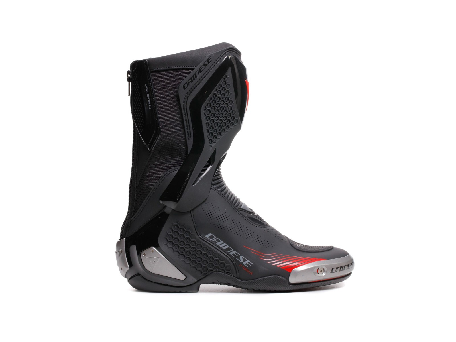 Hergestellt aus Mikrofaser und D-Stone™-Gewebe mit griffigem TPU D-Axial-System und perforiertem Schaft für maximale Belüftung, garantieren diese Rennstiefel, die vom Spitzenmodell Dainese Axial 2 inspiriert sind, maximalen Komfort und hohe Schutzstandards bei gleichzeitiger Beibehaltung eines sportlichen und attraktiven Designs.Das elastische D-Stone™-Gewebe sorgt für maximale Widerstandsfähigkeit und einfache Passform. Die Magnesium-Schieber an Zehen und Ferse sind austauschbar, eine Lösung, die es auch ermöglicht, den Reißverschluss zu ersetzen, wenn er bricht. Höchste Sicherheit an Schienbein und Ferse gewährleistet das D-Axial-System, das im Falle eines Sturzes für eine bessere Stoßdämpfung sorgt und zudem ein äußeres grafisches Muster aufweist, das an den Pro-Amor 2 erinnert. Die innovative asymmetrische Groundtrax®-Sohle mit differenzierten Schalt- und Bremsbereichen garantiert Grip und Hitzebeständigkeit – ein wahrer Meister der Leichtigkeit und Leistung, um sich sowohl auf der Straße als auch auf der Rennstrecke voll und ganz zu entfalten.