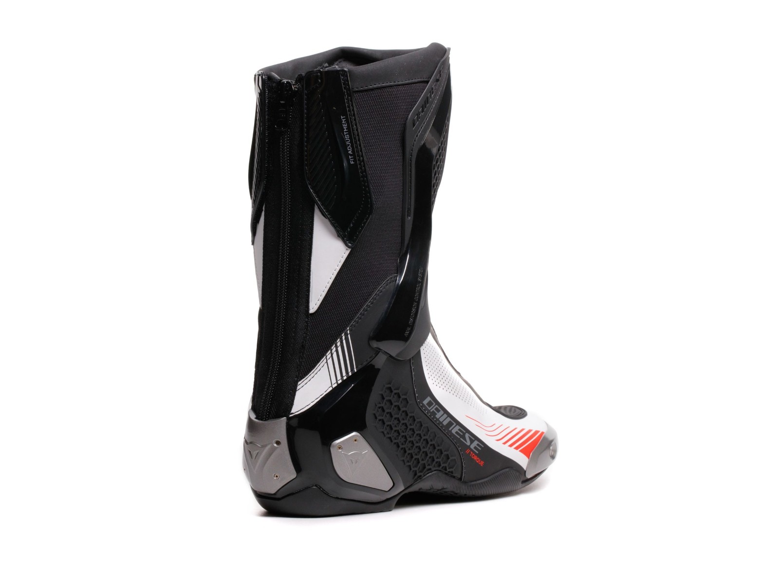 Hergestellt aus Mikrofaser und D-Stone™-Gewebe mit griffigem TPU D-Axial-System und perforiertem Schaft für maximale Belüftung, garantieren diese Rennstiefel, die vom Spitzenmodell Dainese Axial 2 inspiriert sind, maximalen Komfort und hohe Schutzstandards bei gleichzeitiger Beibehaltung eines sportlichen und attraktiven Designs.Das elastische D-Stone™-Gewebe sorgt für maximale Widerstandsfähigkeit und einfache Passform. Die Magnesium-Schieber an Zehen und Ferse sind austauschbar, eine Lösung, die es auch ermöglicht, den Reißverschluss zu ersetzen, wenn er bricht. Höchste Sicherheit an Schienbein und Ferse gewährleistet das D-Axial-System, das im Falle eines Sturzes für eine bessere Stoßdämpfung sorgt und zudem ein äußeres grafisches Muster aufweist, das an den Pro-Amor 2 erinnert. Die innovative asymmetrische Groundtrax®-Sohle mit differenzierten Schalt- und Bremsbereichen garantiert Grip und Hitzebeständigkeit – ein wahrer Meister der Leichtigkeit und Leistung, um sich sowohl auf der Straße als auch auf der Rennstrecke voll und ganz zu entfalten.