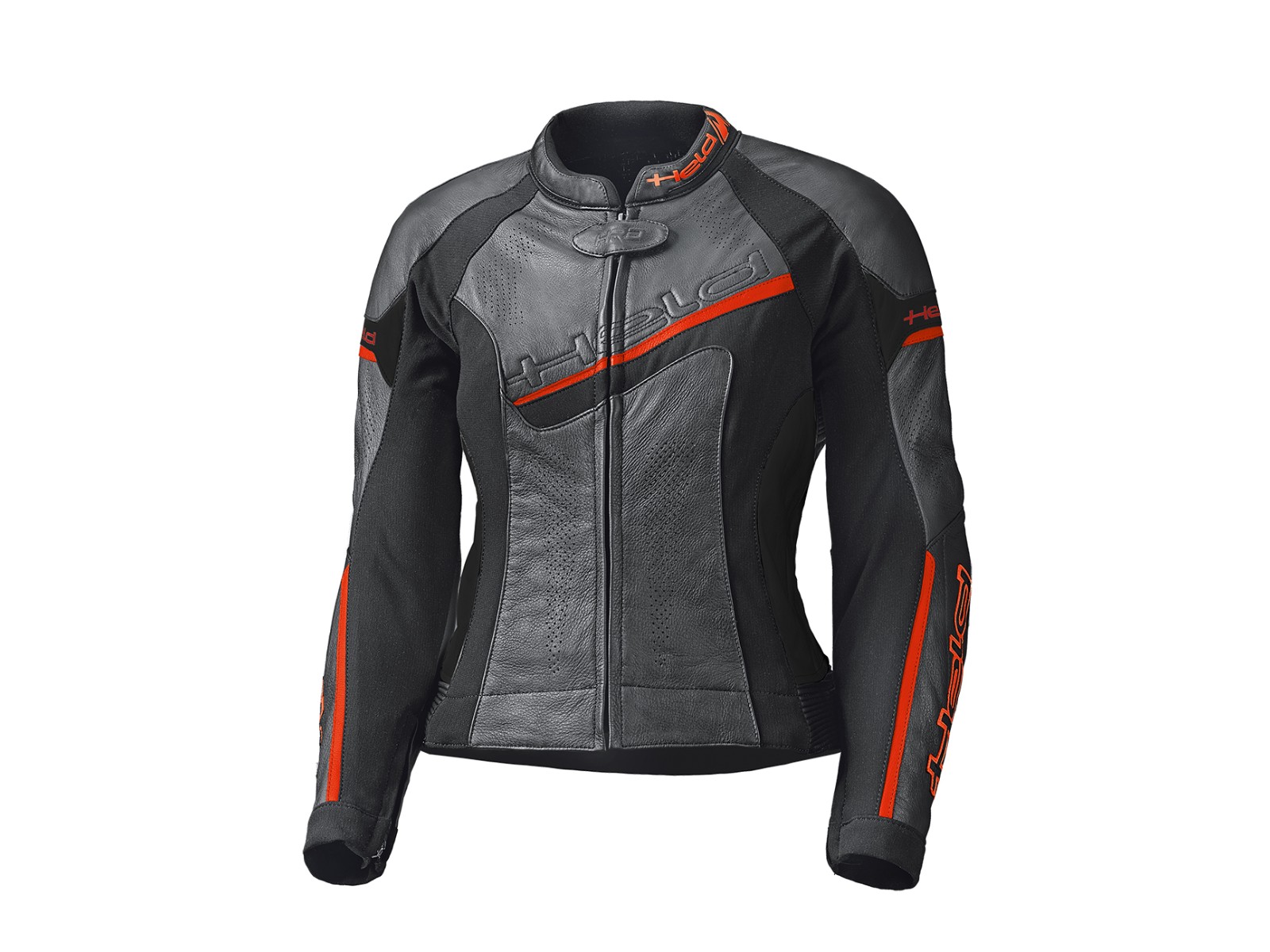 Held Debbie 2 Damen Lederjacke in schwarz/neon-rot. Sportliche und extrem gut sitzende Damen Lederjacke. Ideal kombinierbar mit der Held Lane 2 Lederhose.