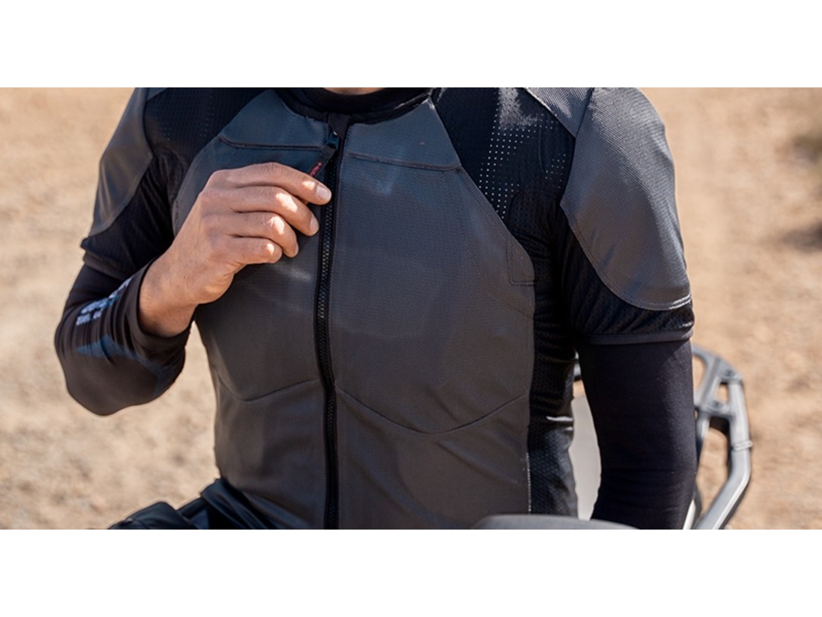 - Für zusätzlichen Schutz bei einem Frontaufprall bietet die eVest Pro die Möglichkeit, einen zweiteiligen Brustprotektor nachzurüsten.