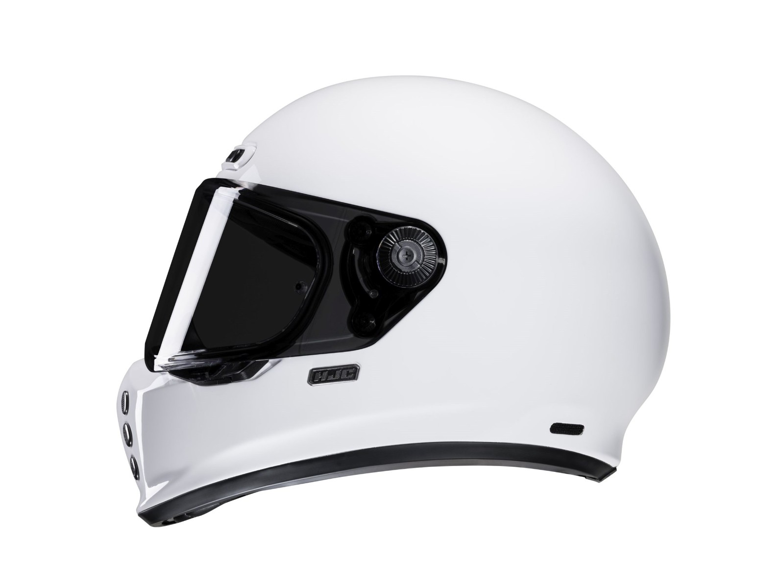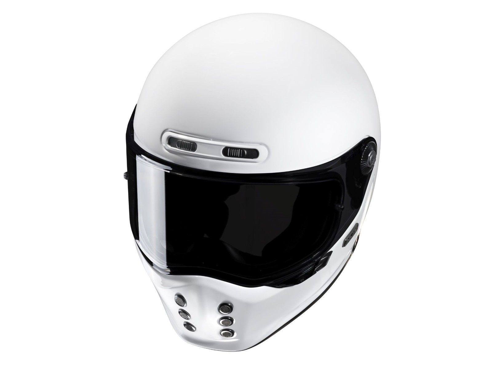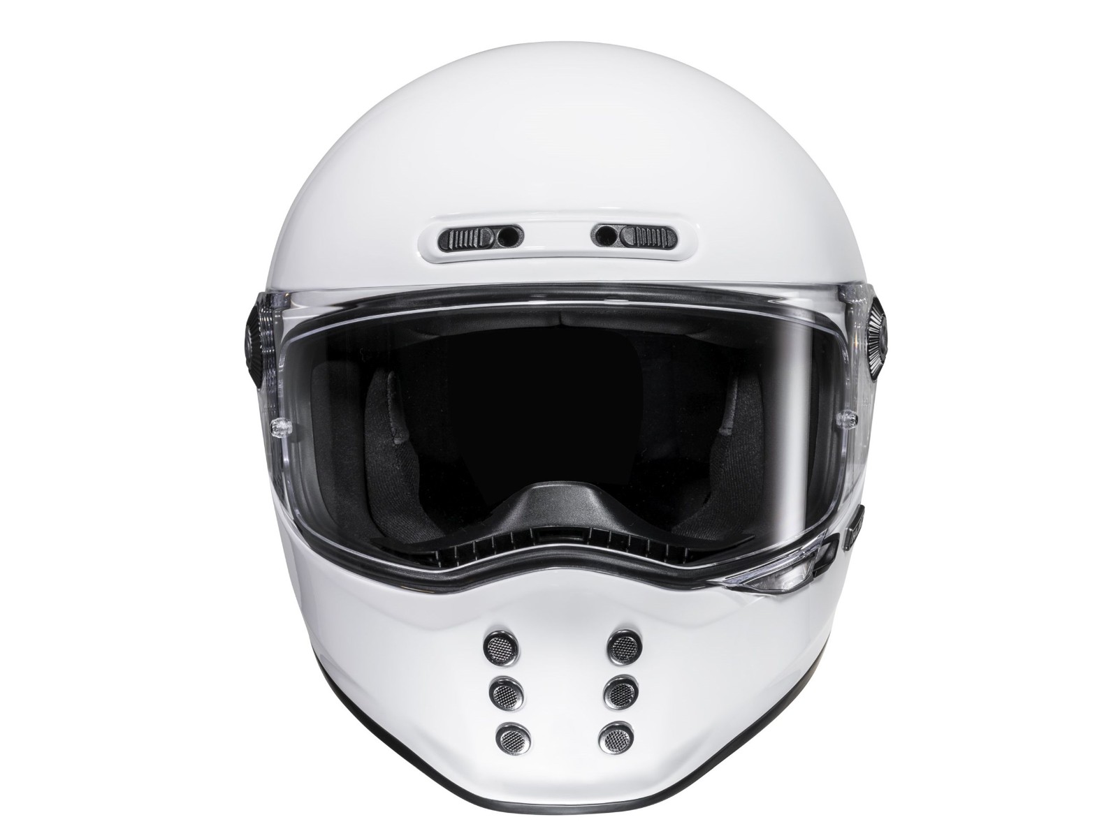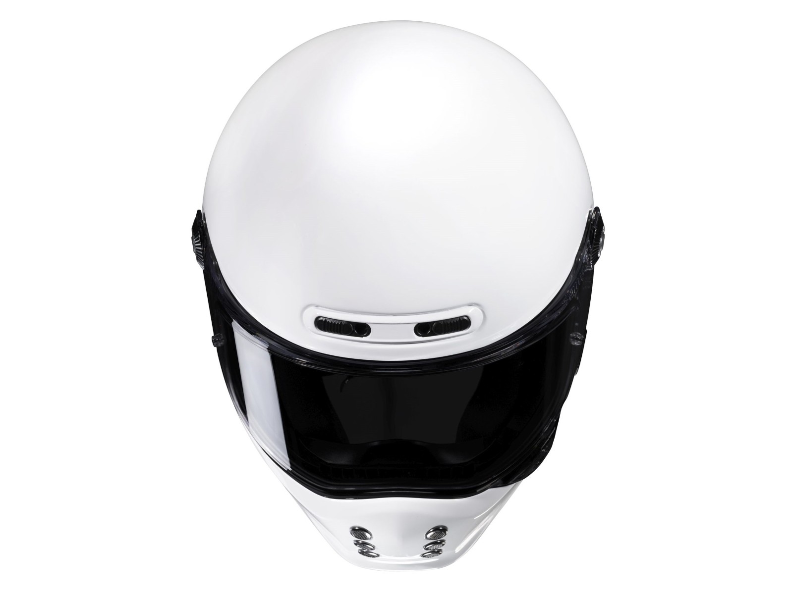 Der V10 geht über den Vintage-Look hinaus und bietet modernste Funktionen wie eine leichte Fiberglasschale, aerodynamische Leistung, Notfalltabs für zusätzliche Sicherheit, herausnehmbare und waschbare Innenausstattung und einfache Schrauben für einen schnellen Visier Austausch. Dieser Helm ist Bluetooth-kompatibel mit Smart HJC.