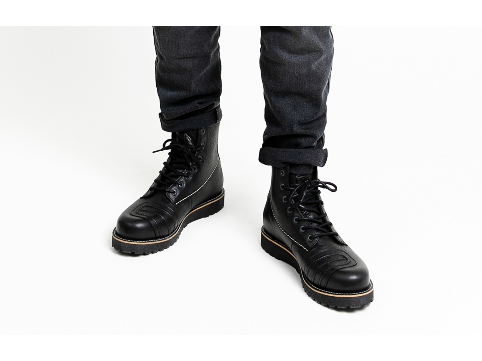 Als klassischer Lederstiefel getarnt, ist der Iron XTM® in Wirklichkeit ein Motorradschuh, der höchsten Sicherheitsstandards genügt. Realisiert haben wir das mit einer Membran aus unserer XTM-Fiber®, die mit der Verstärkung im Knöchel-, Fersen- und Vorderfußbereich für den nötigen Schutz sorgt. Eine „Shift Protection” aus Leder gibt dir beim Schalten zusätzlichen Grip. Durch die „Waterstop“-Funktion der Lasche wird schnelles Eindringen von Wasser in den Schuh vermieden. Selbstverständlich ist die Sohle des Iron XTM® rutschfest, ölresistent und vibrationsabsorbierend.