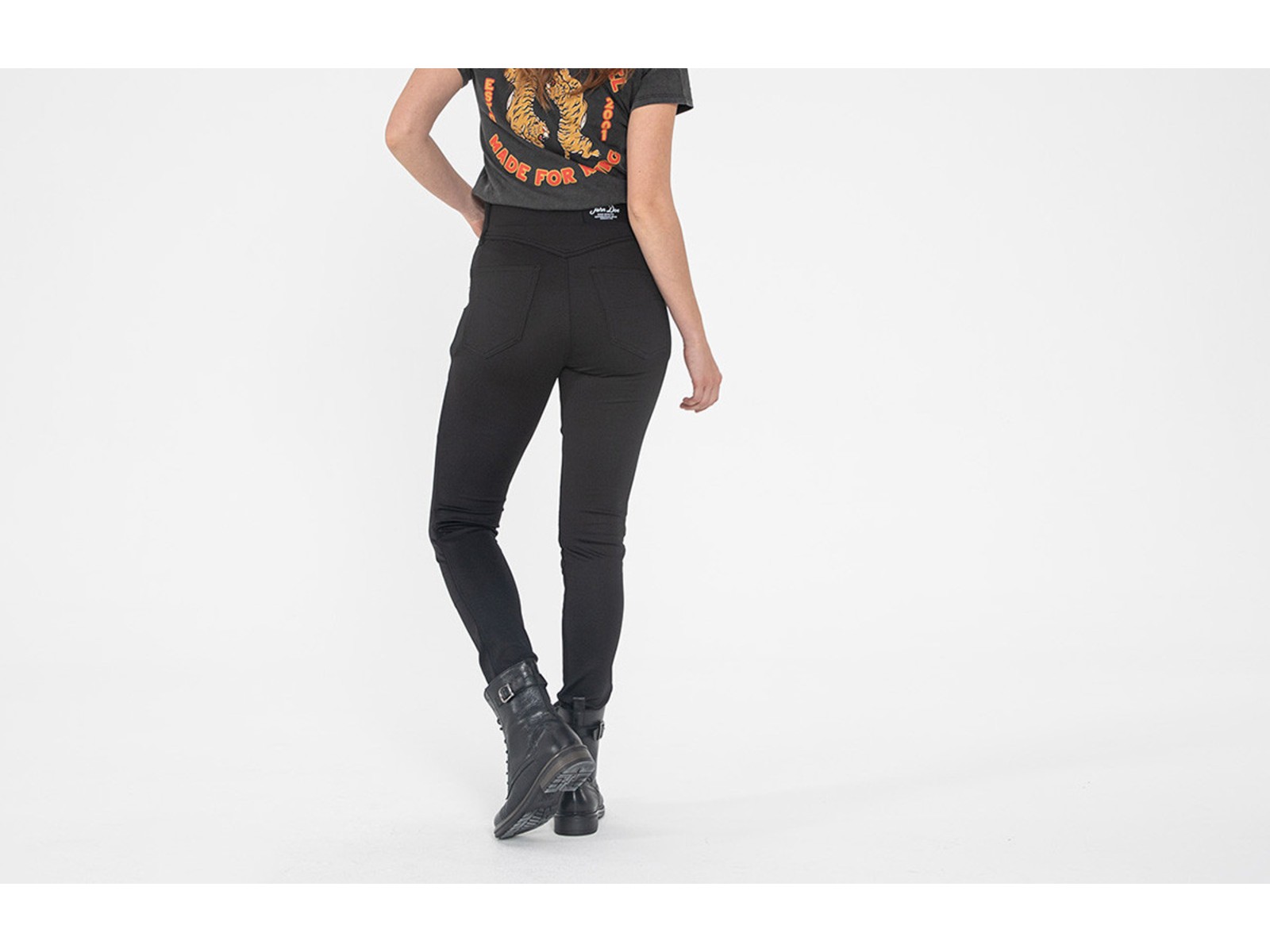 Die Jeggy Monolayer ist aus einem einlagigen speziellen XTM® Baumwoll-Nylon-Stoff gefertigt, der die Elastizität einer Leggings bietet. Ein bequemes Material, das für einen starken Look sorgt. Kein Reißverschluss mehr nötig, die Jeggy bietet somit noch mehr Bewegungsfreiheit. Das neue Verfahren erhöht den Tragekomfort und bietet dir maximale Flexibilität im Alltag.Auf Sicherheit musst du selbstverständlich nicht verzichten, denn die hoch geschnittene Jeggy besitzt eine AA-Zertifizierung und schützt dich in Verbindung mit den Protektoren im Knie- und Hüftbereich in jeder Situation.