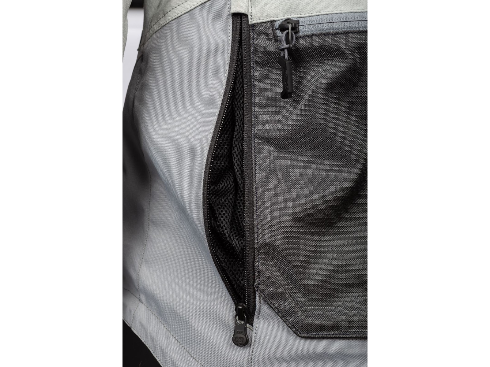 - 2 einstellbare Belüftungen an den Handgelenken mit Doppel-Reißverschluss