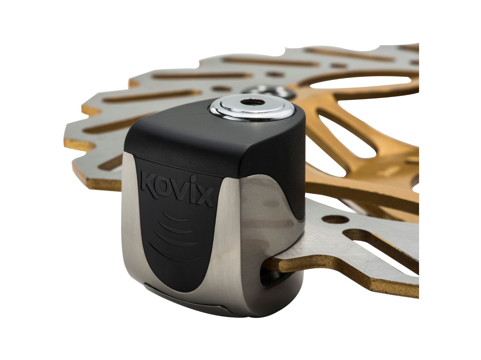 KOVIX KS6 Brems-Scheibenschloss 5,5mm | mit Alarm metall-gebürstet Motorrad/Roller