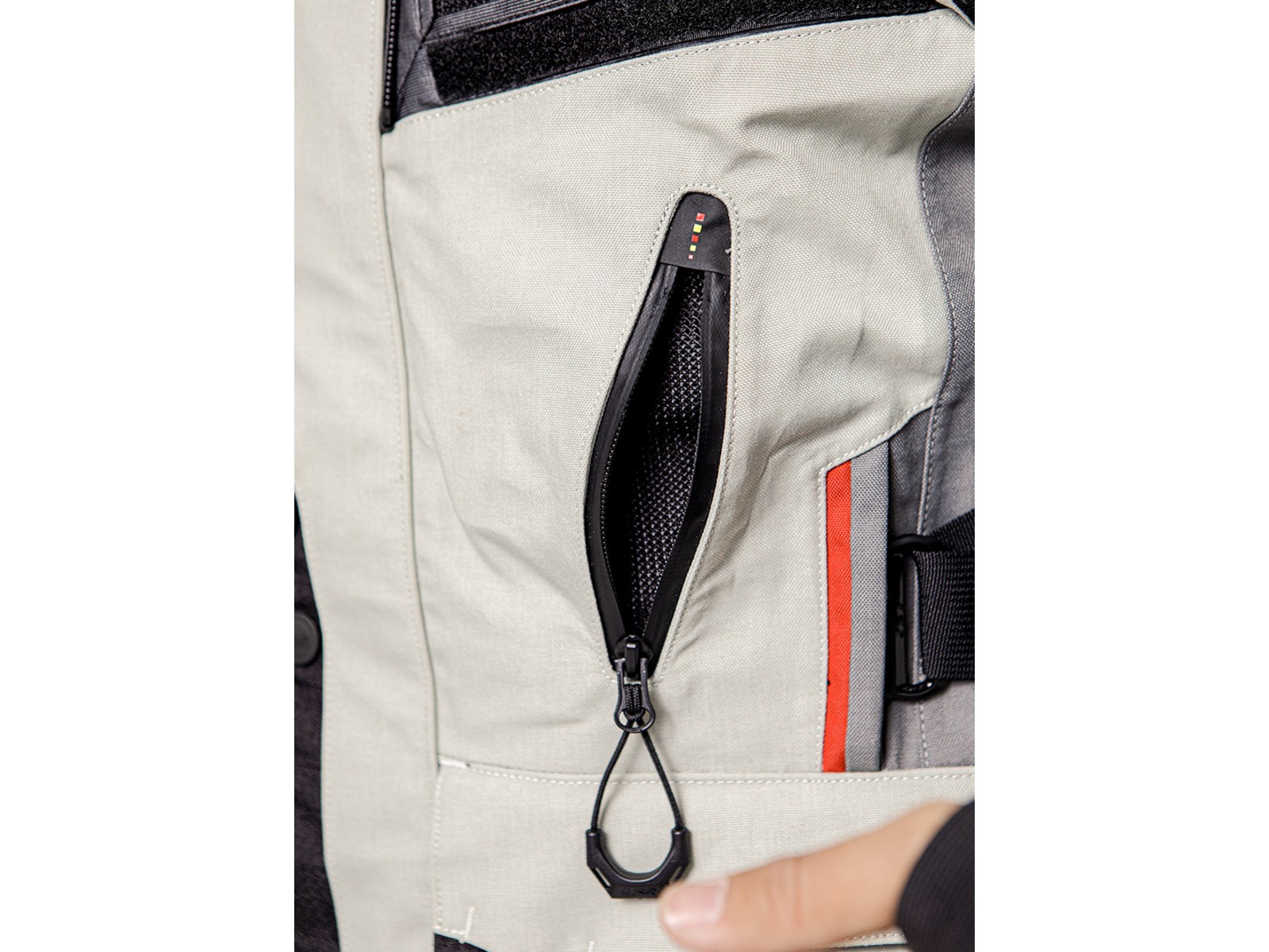 Bequeme Tourenjacke für alle 4 Jahreszeiten mit herausnehmbarem Thermofutter. Maximale Wasser- und Windfestigkeit dank 3-lagigem Cordura-Gewebe. Belüftungseinsätze an Brust und Rücken. Arm- und Taillenverstellung. Abnehmbare Protektoren an Ellbogen und Schultern.