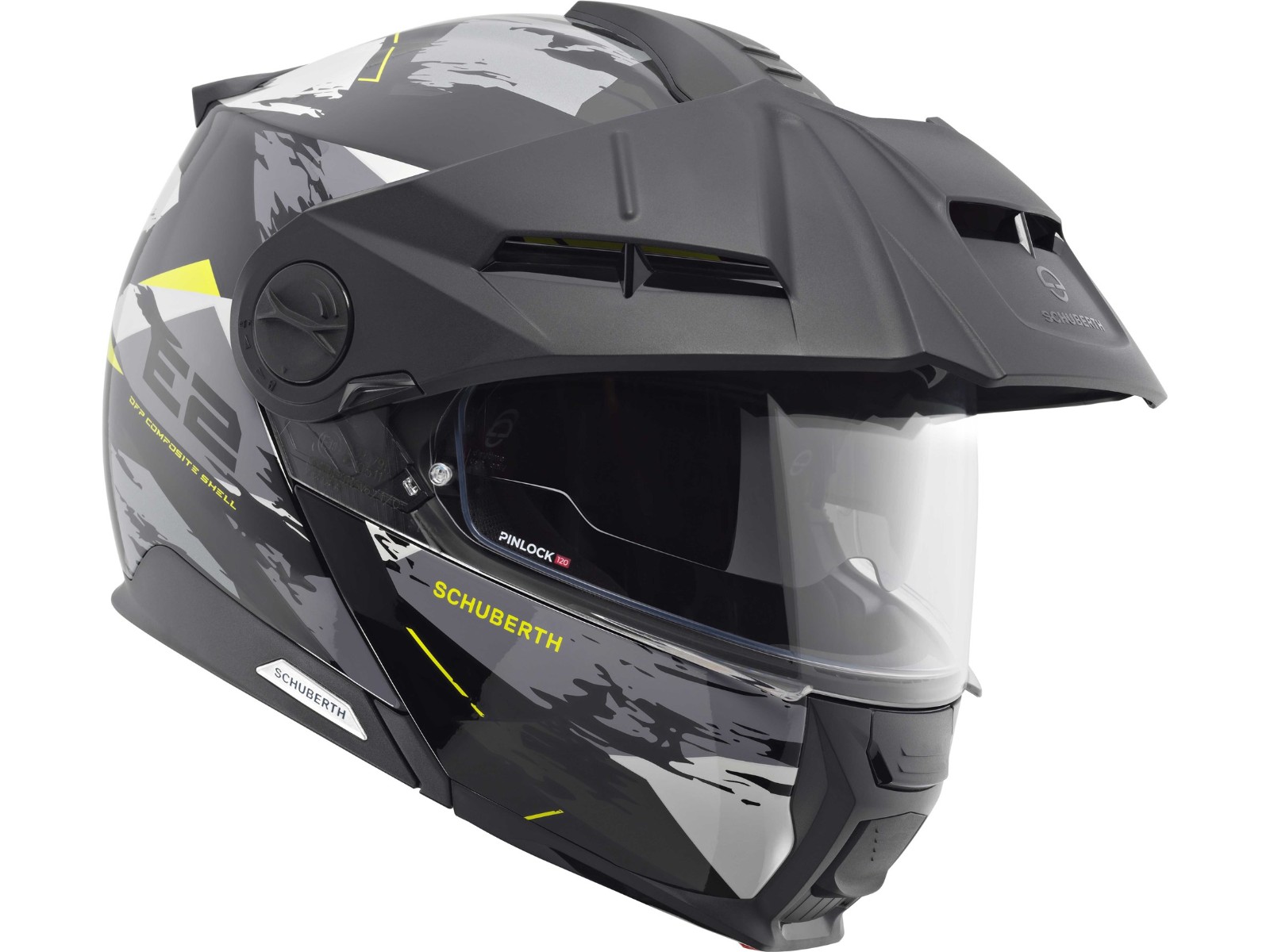R 22.06 Norm entspricht. Der SCHUBERTH E2 ist die perfekte Mischung zwischen dem Komfort der berühmten „C“ Serie und dem aggressivem Aussehen eines Offroad-Helms. Die anpassbare Innenpolsterung bietet eine perfekte Passform für alle Kunden und hebt diesen Adventure-Helm auf ein neues Level, bereit, die staubigsten Wege zu rocken.
