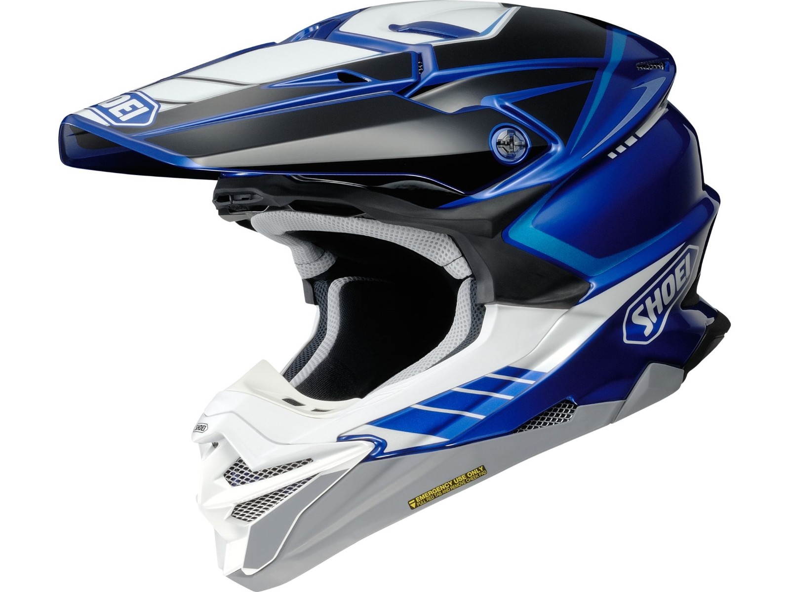 Mit dem VFX-WR 06 Jammer TC-2 blau legt Shoei eine Legende neu auf. Der brandneue VFX-WR 06 Motocross oder Enduro Helm verfügt nun über die neueste Homologation der ECE 22/06. Modernste Schalenbautechnik ermöglicht die Formgebung für eine hochstabile und zugleich leichte Helmschale mit futuristisch-aggressiver Optik. Durchgängige Konturen vom Schirm über die Helmschale hinweg bis zum Hinterkopf sorgen für Stabilität der Schale, perfekte Führung des Brillenbandes und einen unvergleichlichen Look. Das neue, integrierte Sicherheitssystem M.E.D.S. (Motion Energy Distribution System) sorgt bei einem Sturz für bestmögliche Reduzierung der Rotationsenergie.