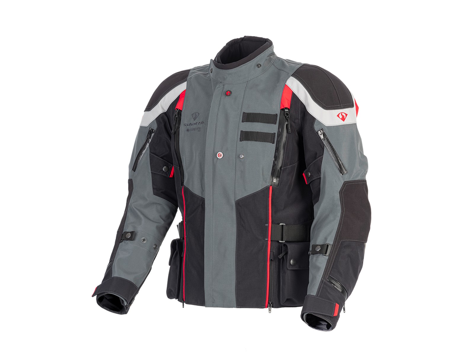 Stadler Fearless Pro 3-Lagen Gore-Tex Jacke schwarz/grau/rot wasserdicht