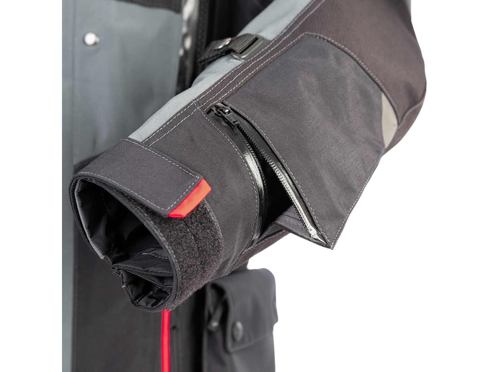 - Armtaschen mit integrierter Lüftung links und rechts am Oberarm