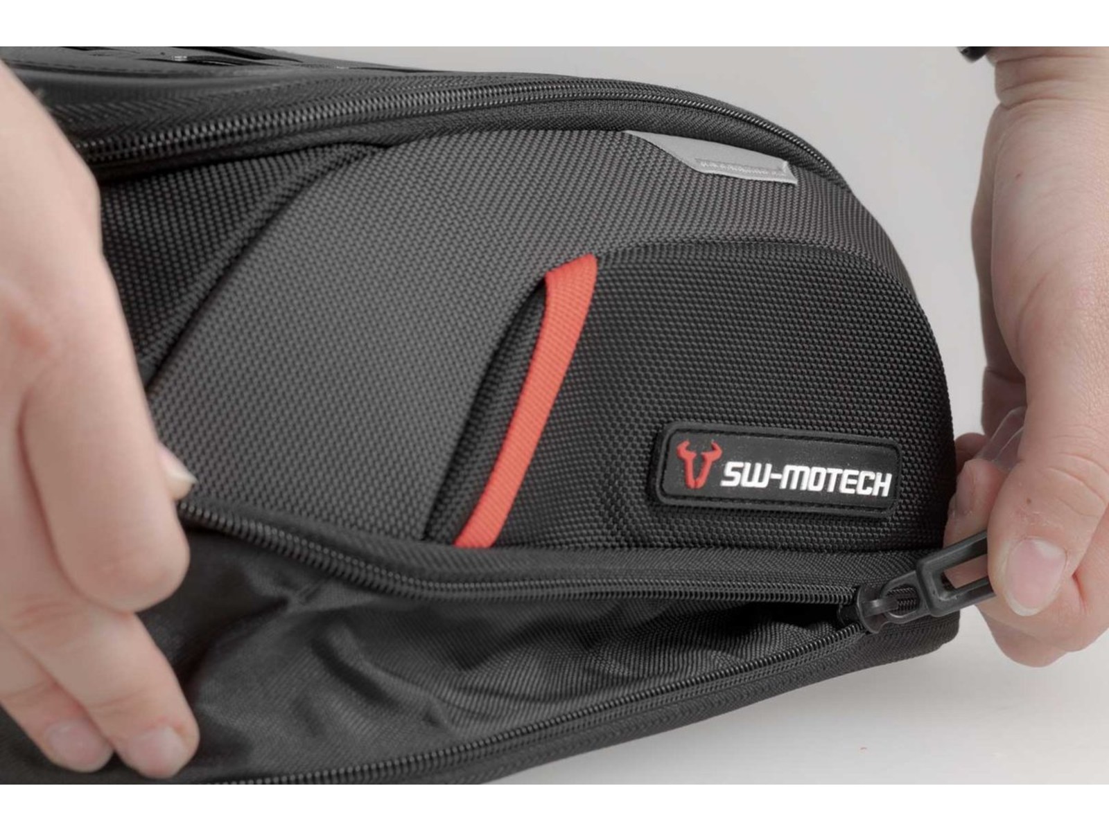 Die bereits ab Werk befestigte Führungsschiene des Oberrings erlaubt eine deutlich vereinfachte Anpassung des Tankrucksacks an die Form des Tanks und die ergonomischen Bedürfnisse des Fahrers. Diese Flexibilität bieten nur die PRO Tankrucksäcke. Passend dazu bietet SW-MOTECH die patentierten PRO Tankringe aus glasfaserverstärktem Kunststoff. Sie werden abgestimmt auf das Motorradmodell gefertigt.