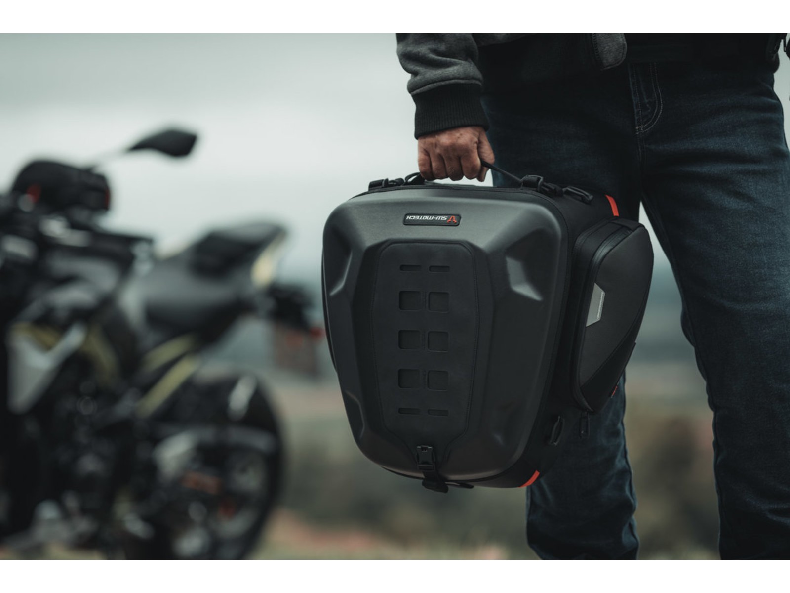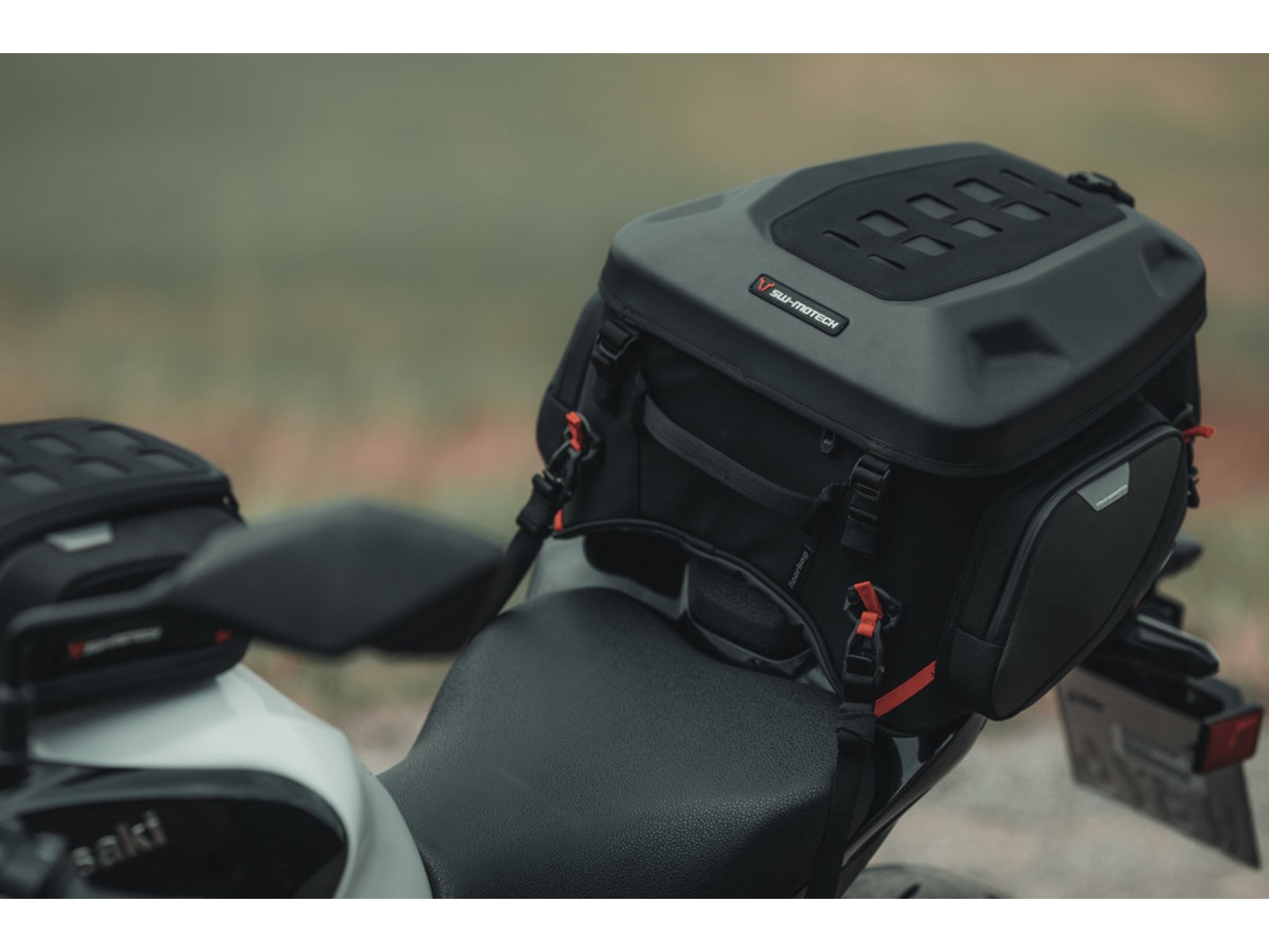 Mit seiner universellen Passform eignet sich das PRO Rearbag für den Einsatz auf Straßenmaschinen genauso wie für den Soziussitz einer Reise-Enduro. Mit einem Volumen von 22 Litern, das sich auf bis zu 34 Liter erweitern lässt, bietet die Tasche ausreichend Platz für Reisegepäck auf dem Soziussitz deines Motorrades.
