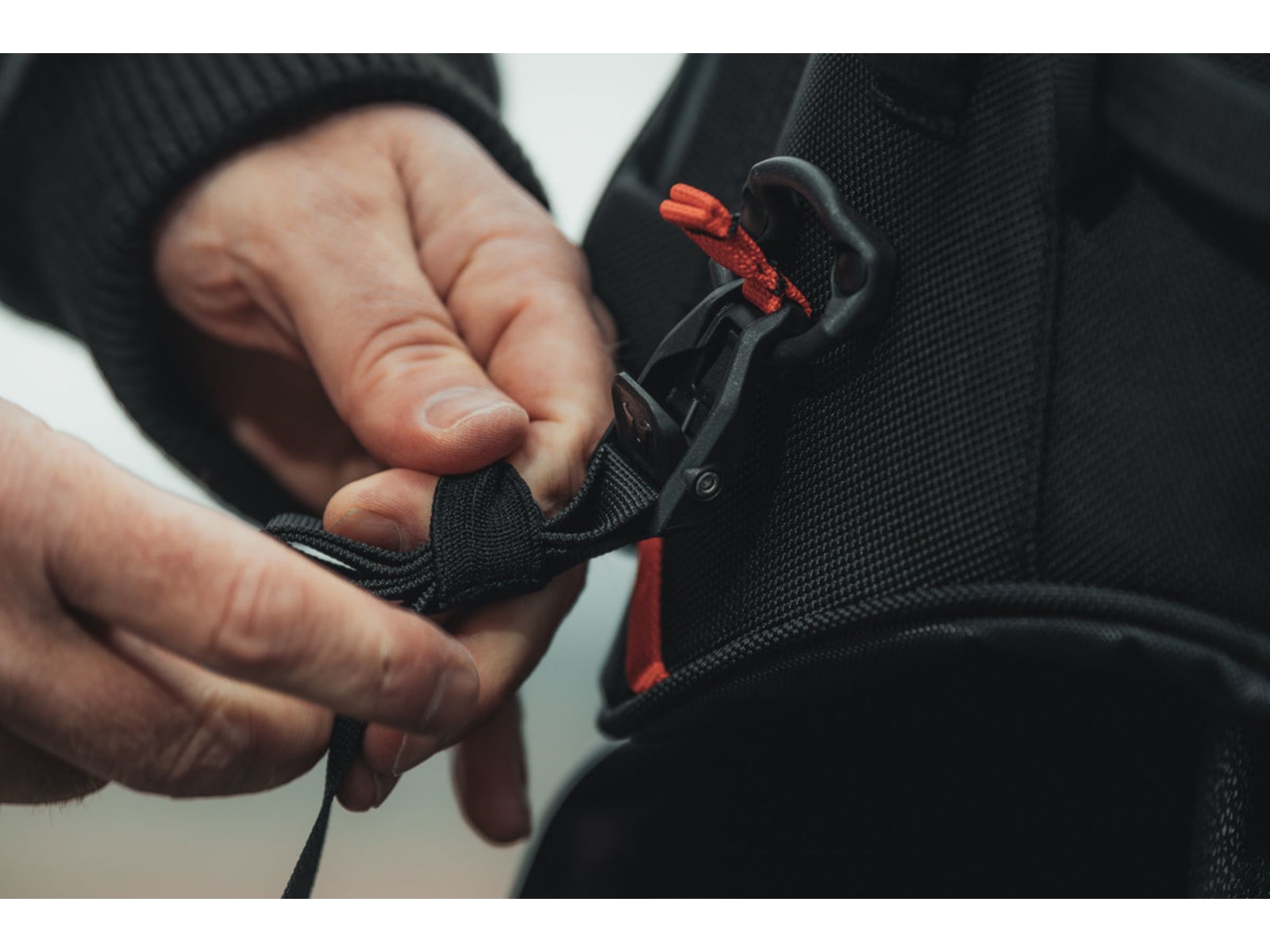 - Einfache und schnelle Befestigung der Tasche am Motorrad durch Schlaufgurte mit patentiertem Zurrhaken.