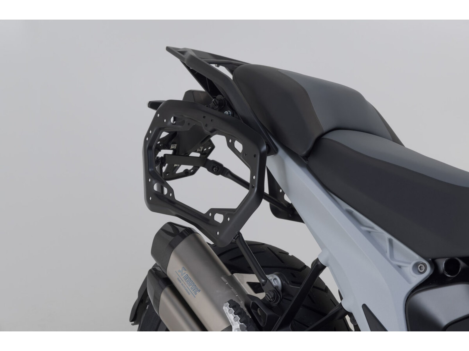 Für die Montage von Seitenkoffern am PRO Seitenträger sind spezifische Adapterkits notwendig. Diese sind separat erhältlich für die SW-MOTECH Koffer der Serien TRAX ADV, TRAX ION und AERO ABS sowie SysBag mit Adapterplatte (SysBag 15, 30 und WP L). Auch für Koffersysteme anderer Hersteller sind Adapterkits separat erhältlich.