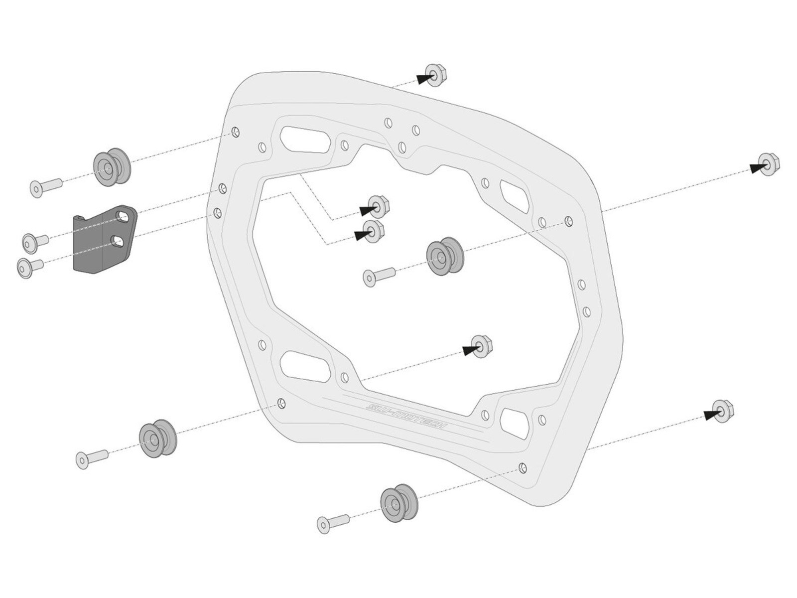 - Zur Montage an den vorhandenen Bohrungen des SW-MOTECH PRO Seitenträgers